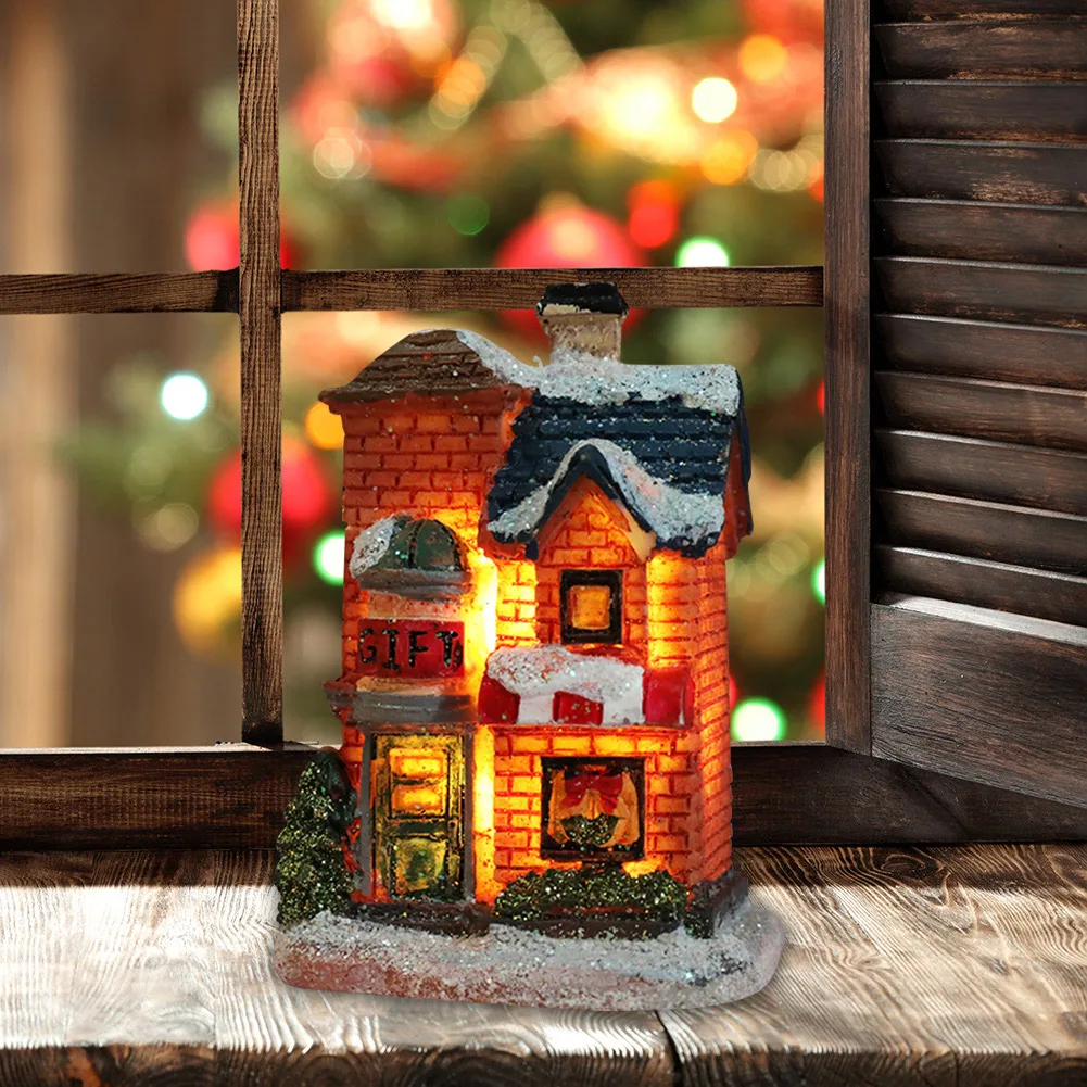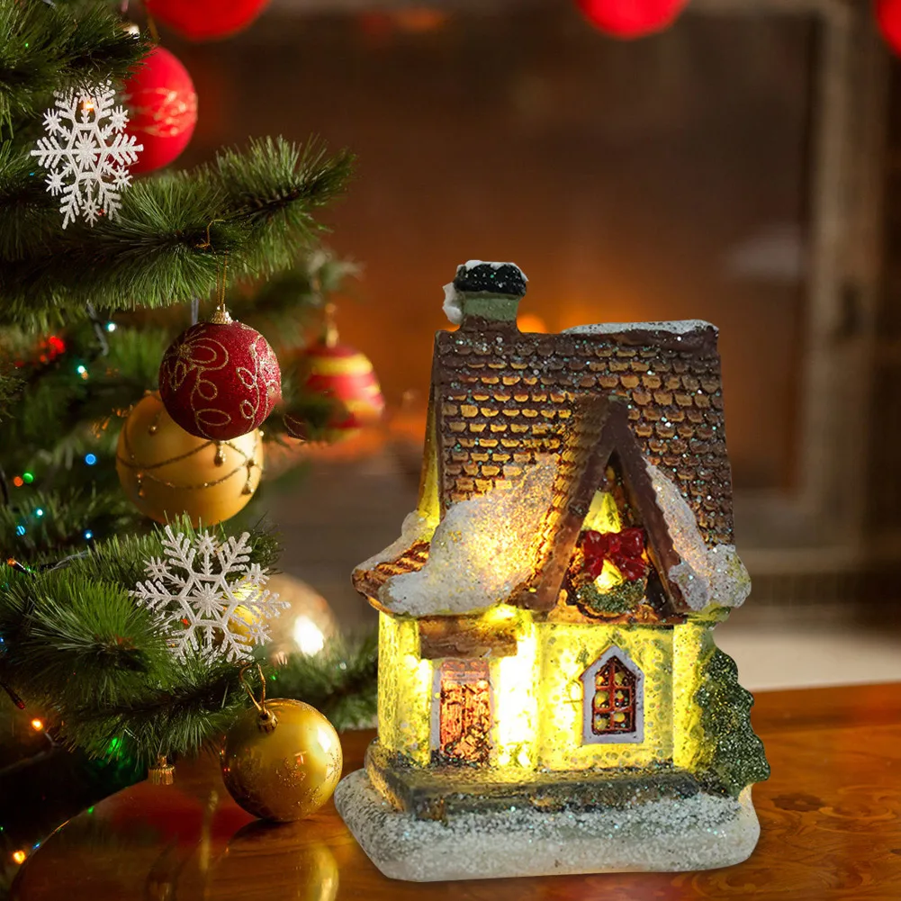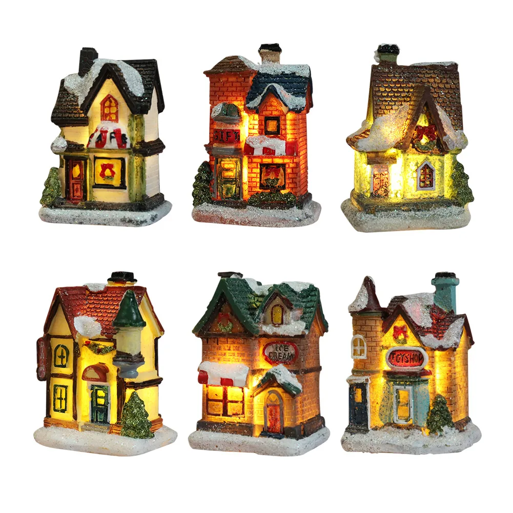 Рождественский мини-дом из смолы, светодиодный Рождественский замок...