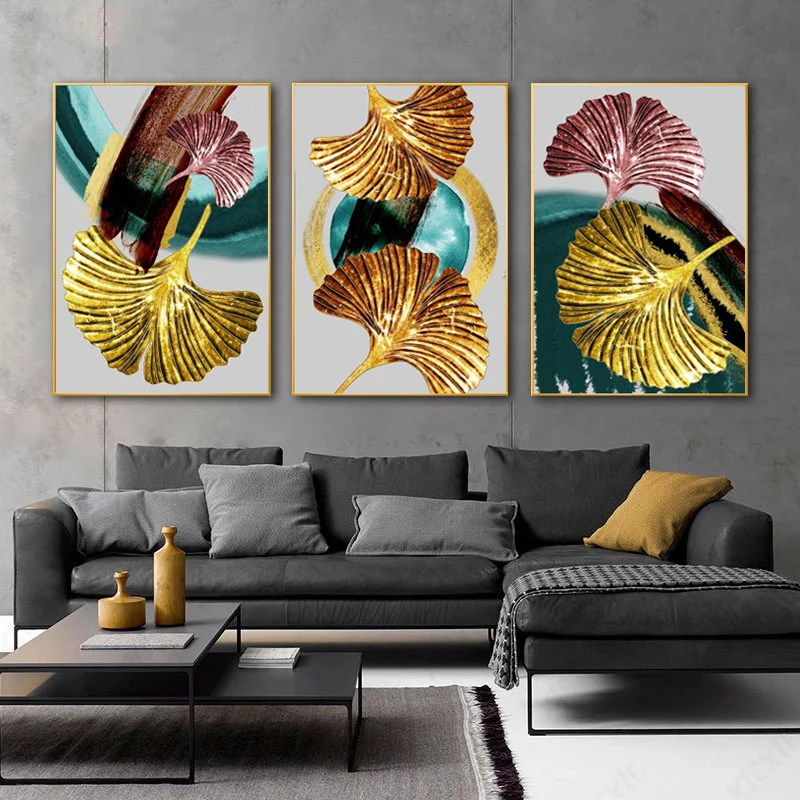 Постеры с изображением золотых растений гингко, Абстрактная Картина на холсте, Настенная картина для гостиной, Современный домашний декор, холст, принты