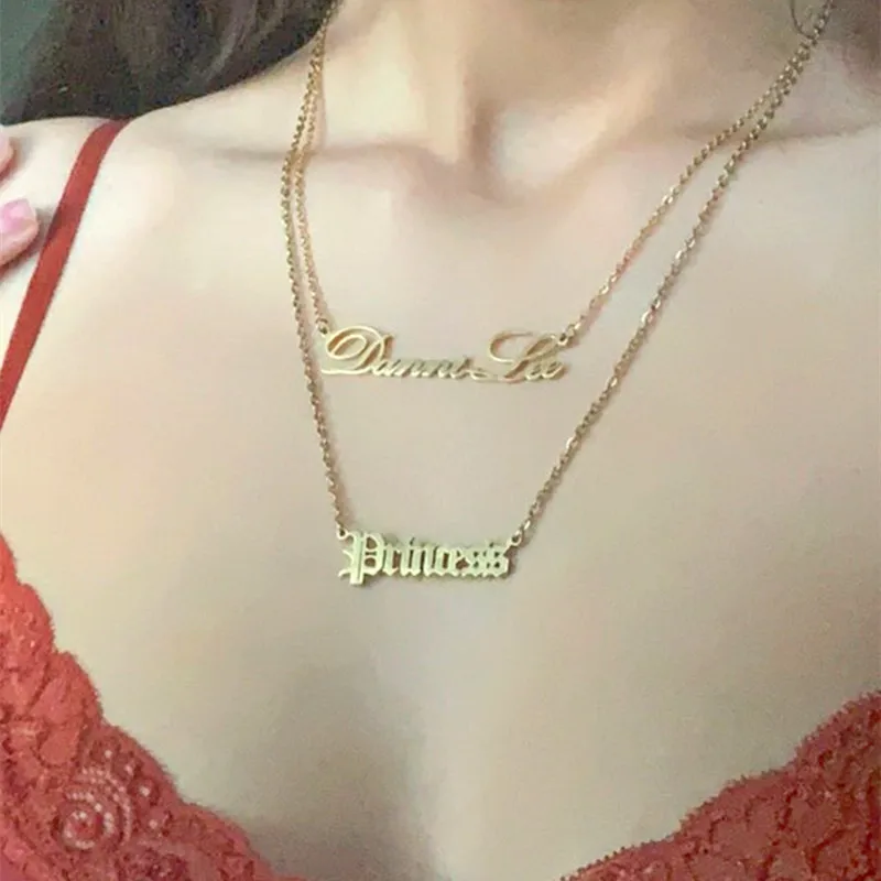 Женское длинное ожерелье из нержавеющей стали с буквенным принтом на заказ, подвеска на цепочке DIY, ювелирное изделие, индивидуальный подарок для жены