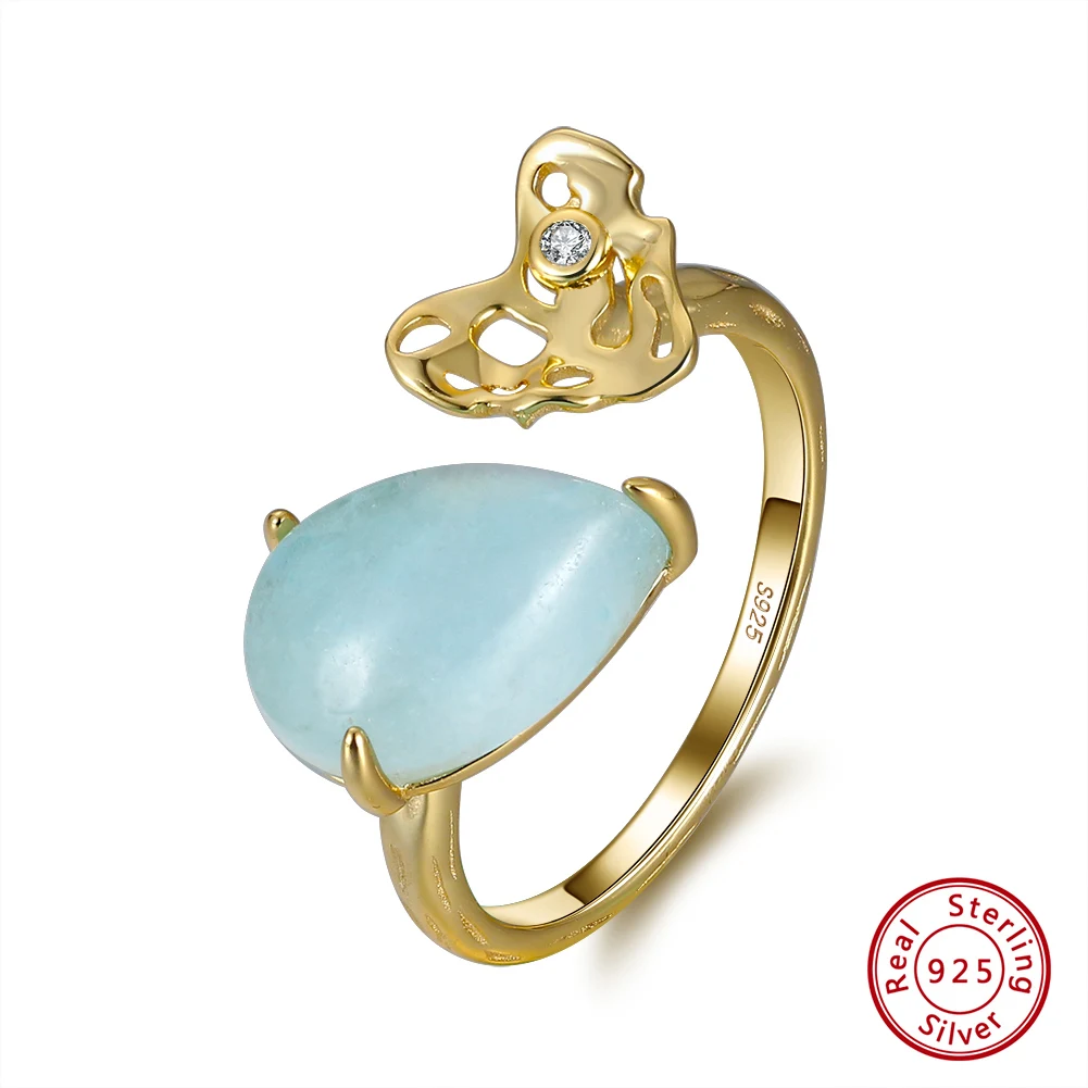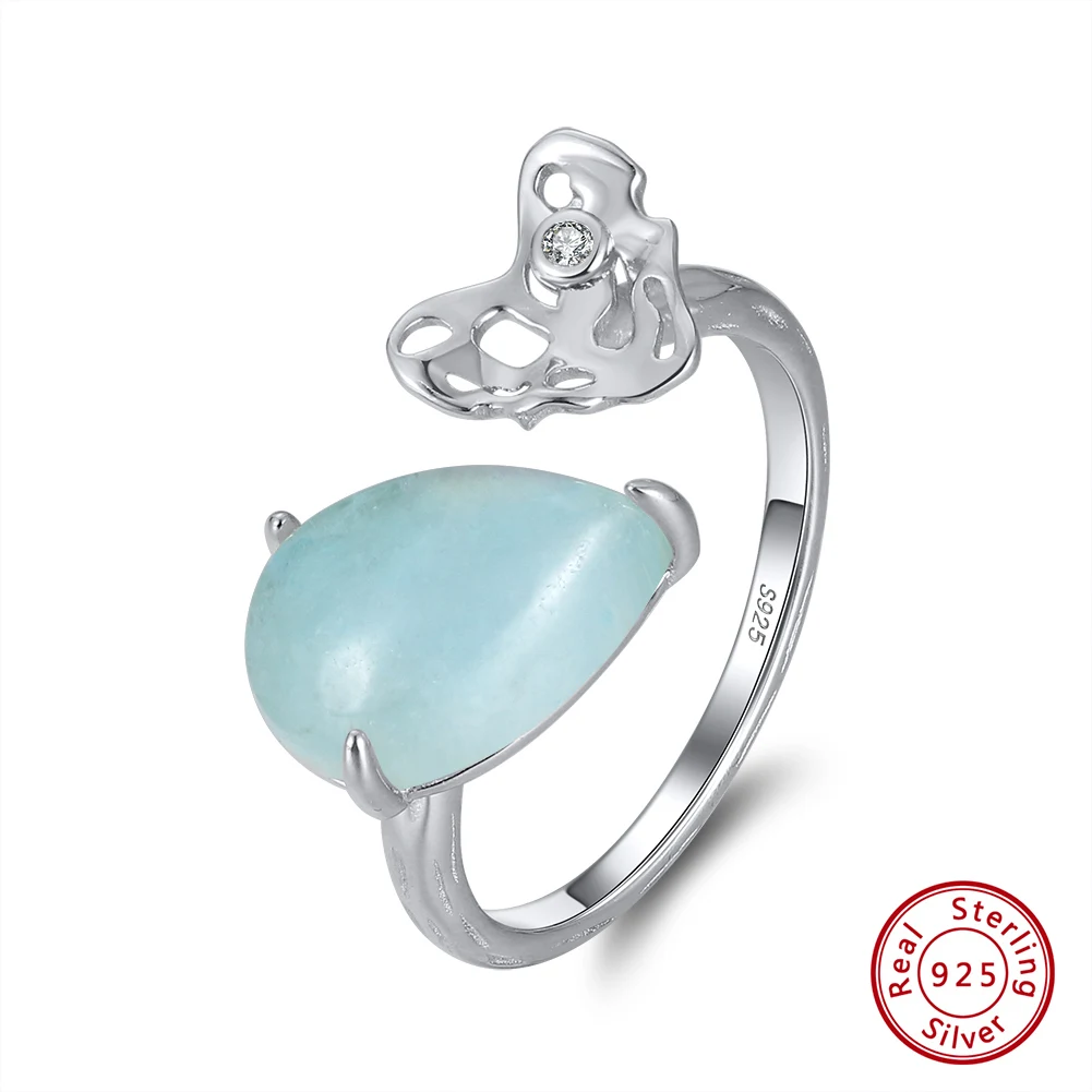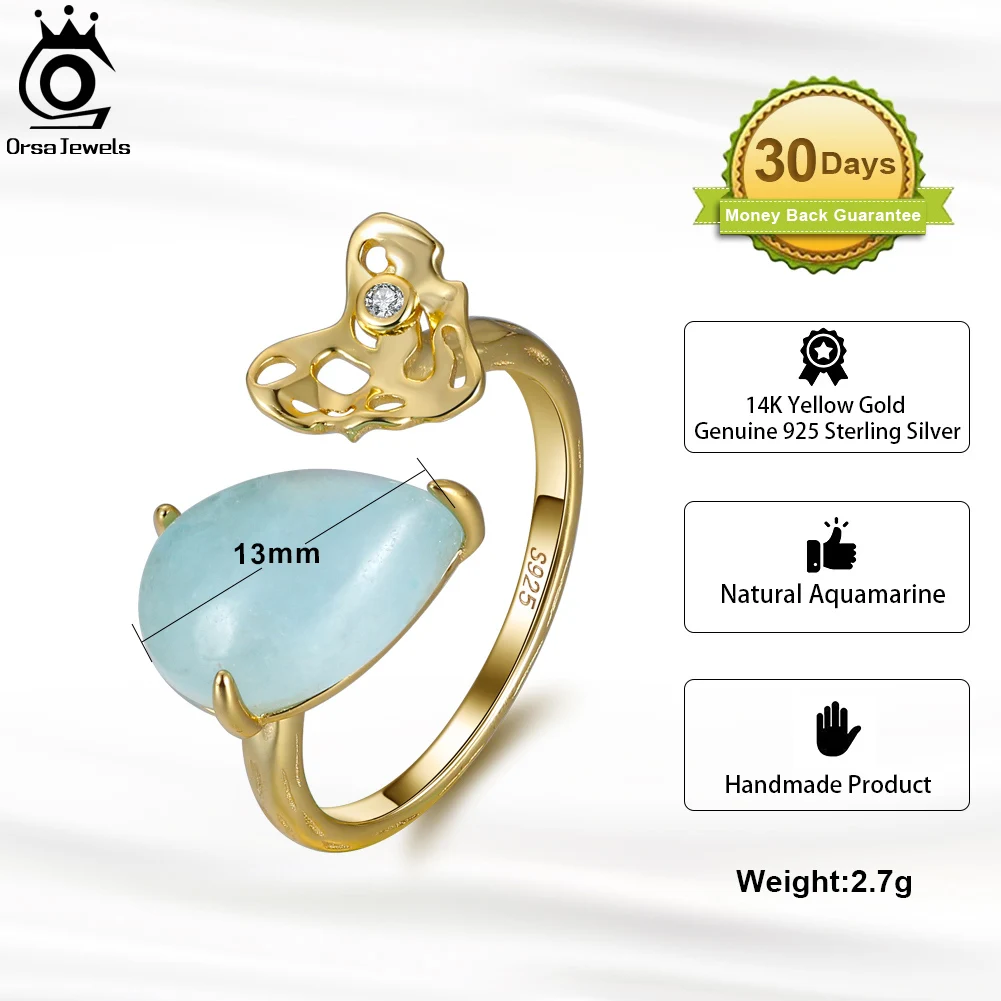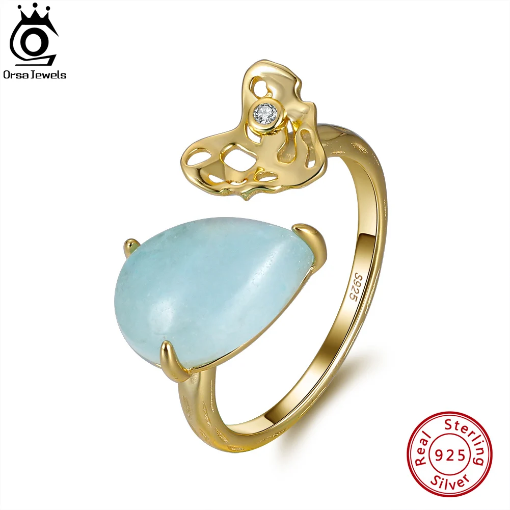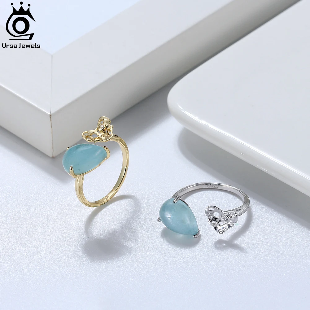 ORSA JEWELS 100% натуральная форма груши аквамарин 925 пробы Серебряное регулируемое кольцо с молотком ручной работы сердце GMR04