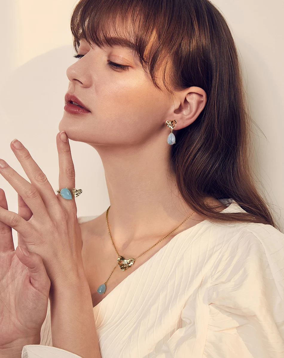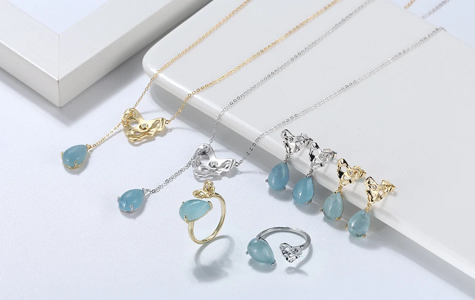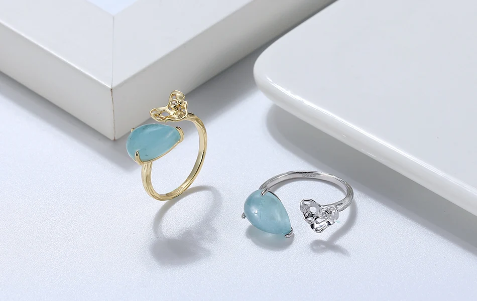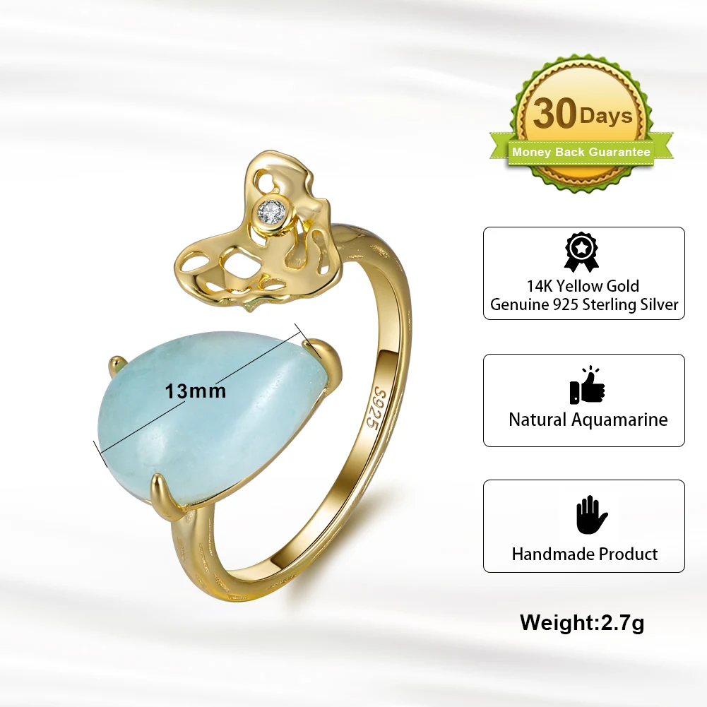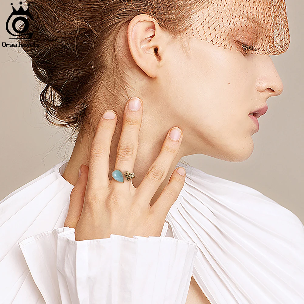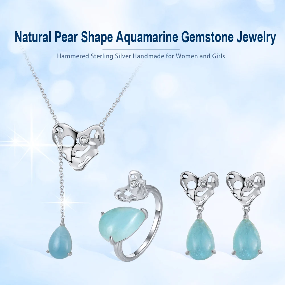 ORSA JEWELS 100% натуральная форма груши аквамарин 925 пробы Серебряное регулируемое кольцо с молотком ручной работы сердце GMR04