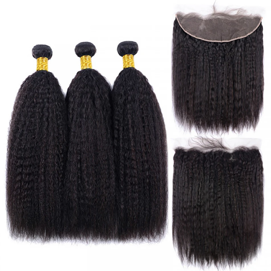 Бразильские пряди волос Maxine 10 А, волнистые прямые человеческие волосы с фронтальной сеткой 13x4 HD