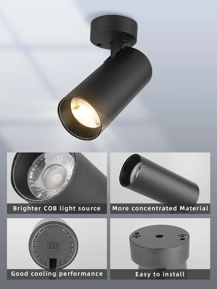 Трековый светодиодный светильник 220 В, направляющий светильник с поверхностным креплением, Точечный светильник 12 Вт 20 Вт 30 Вт 40 Вт, потолочный Точечный светильник для магазина одежды, кухни, лофта