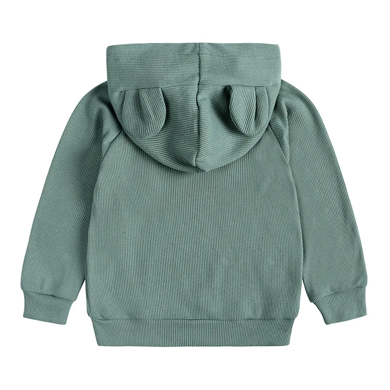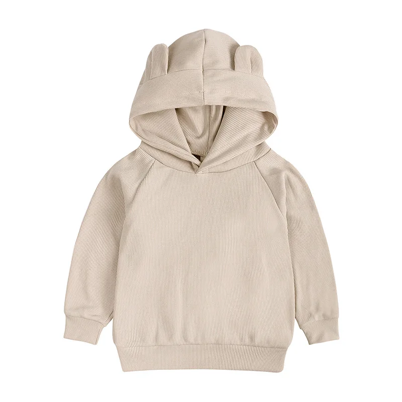 Осенне-зимняя одежда из хлопка в рубчик для маленьких мальчиков толстовка с ушками и длинными рукавами для малышей, детский Однотонный свитер с капюшоном + штаны-шаровары