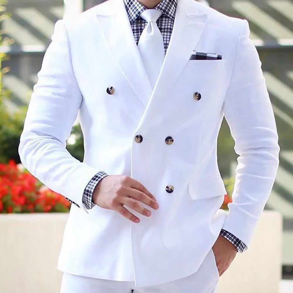 Мужские костюмы белого цвета, индивидуальный заказ, облегающий двубортный Блейзер, свадебные смокинги для жениха, 2 предмета, строгий Женский блейзер