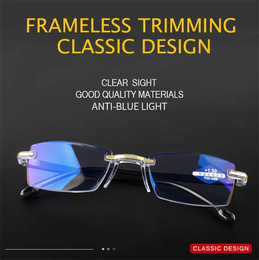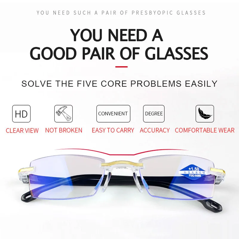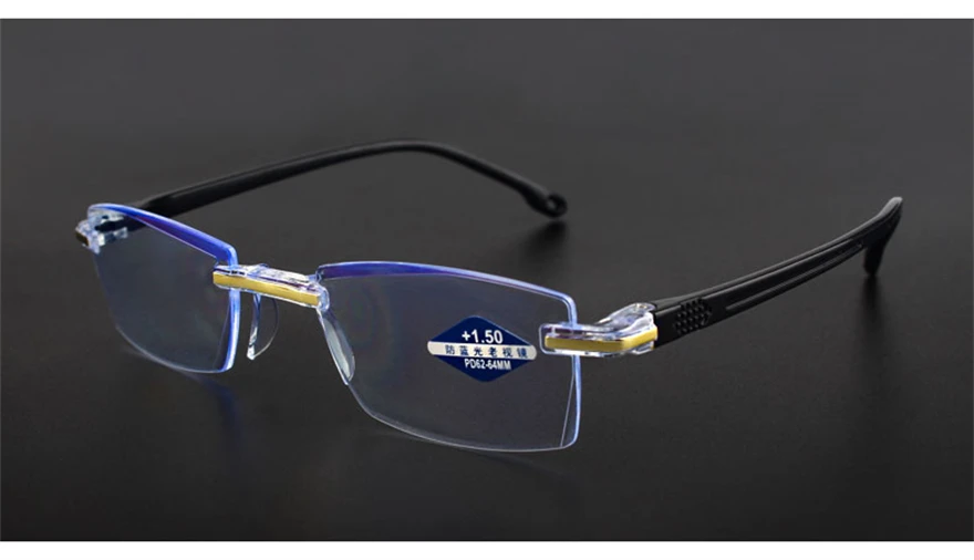 CLLOIO очки для чтения без оправы для женщин и мужчин анти-Синие лучи квадратные бескаркасные пресбиопические очки диоптрии + 1,0 1,5 2,0 2,5 3,0 3,5 4,0
