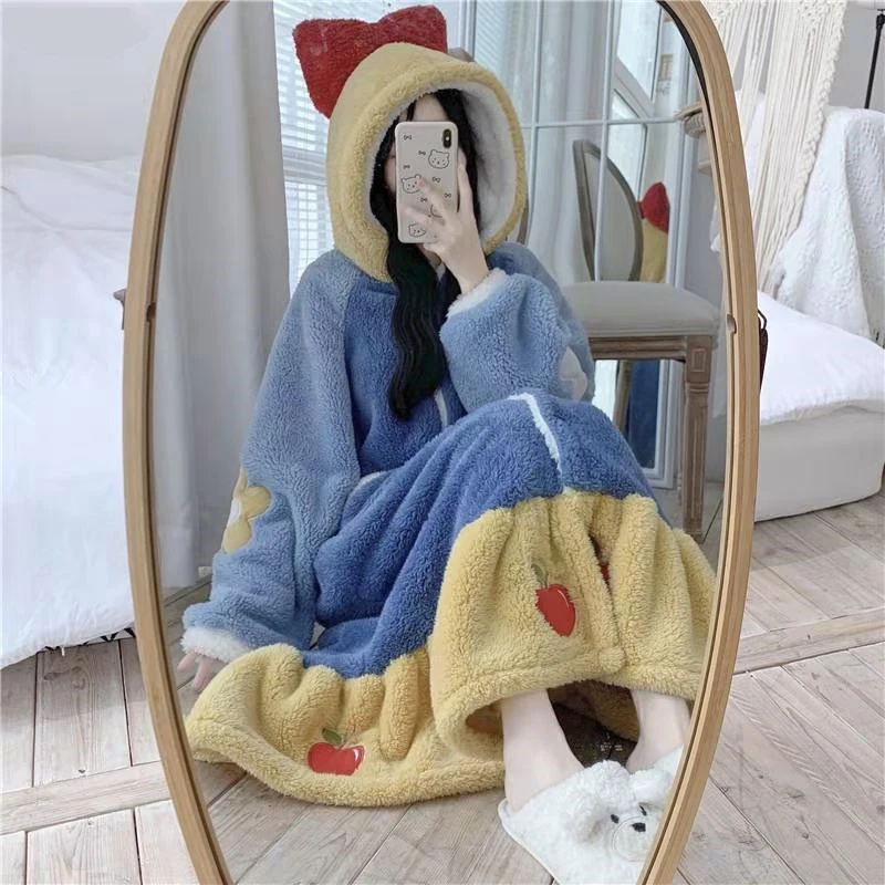 Женская утепленная ночная рубашка из кораллового флиса с длинным рукавом