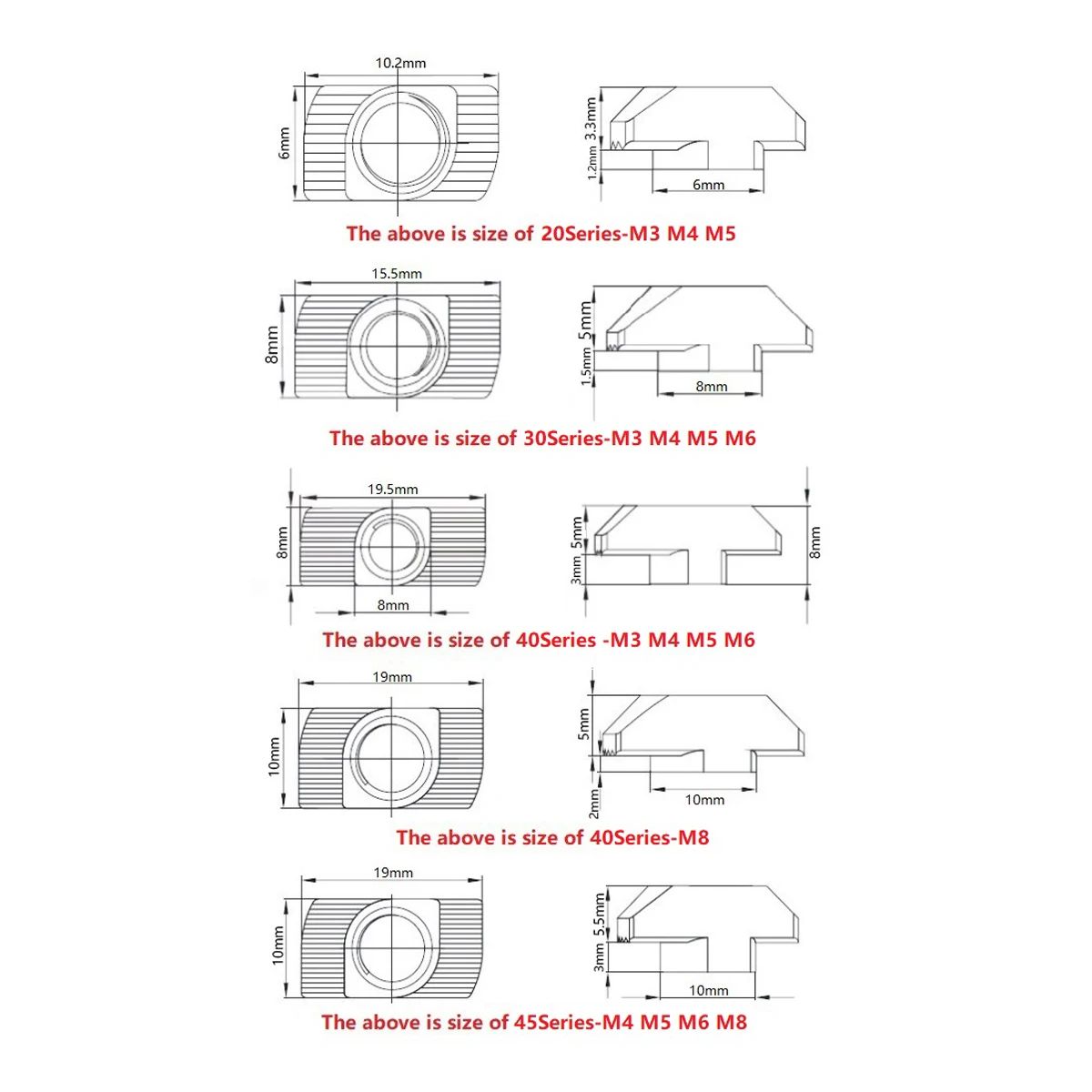 Название продукта: T Nut Материал: никелированная углеродистая сталь Диаметр резьбы: M3/M4/M5/M6/M8 Особенности: Прямая T гайка, легкая и Удобно устанавливать. Подходит для европейских алюминиевых разъемов 20 мм серии T Экструзия. Широко используется для строительства промышленных алюминиевых каркасных конструкций, Фрезерные станки с ЧПУ, 3D-принтеры, лазерные Фрезы с ЧПУ, плазменные Фрезы с ЧПУ, Робототехнические проекты, 3D резчики, охранники машин, рабочие станции и т. Д. Посылка включает в себя: