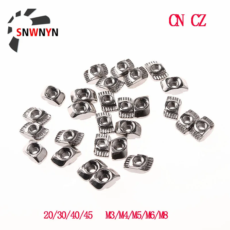 50 шт.компл. M3M4M5 для слота серии 20304045, Т-образная гайка, скользящий Т-образный молоток, крепежный соединитель, алюминиевый экструзионный профиль