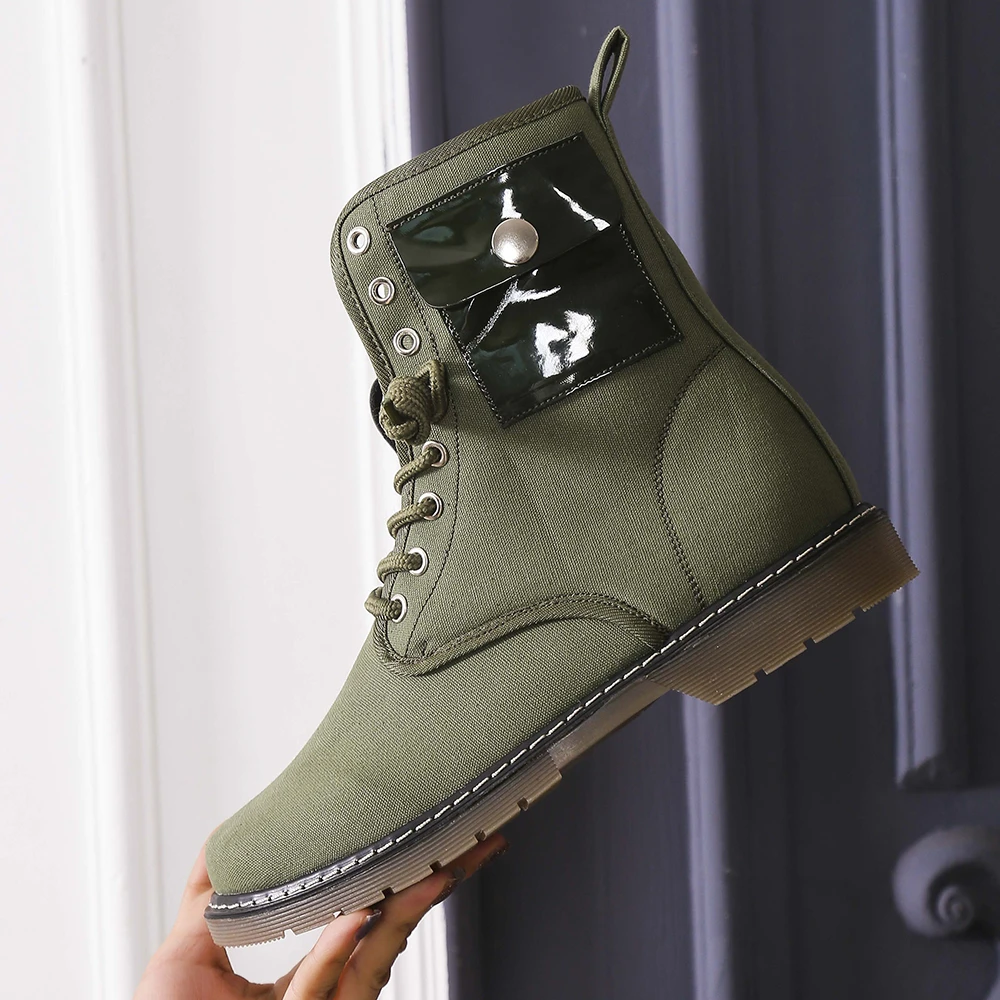 Модные однотонные женские ботинки с карманами, осенне-зимняя теплая...