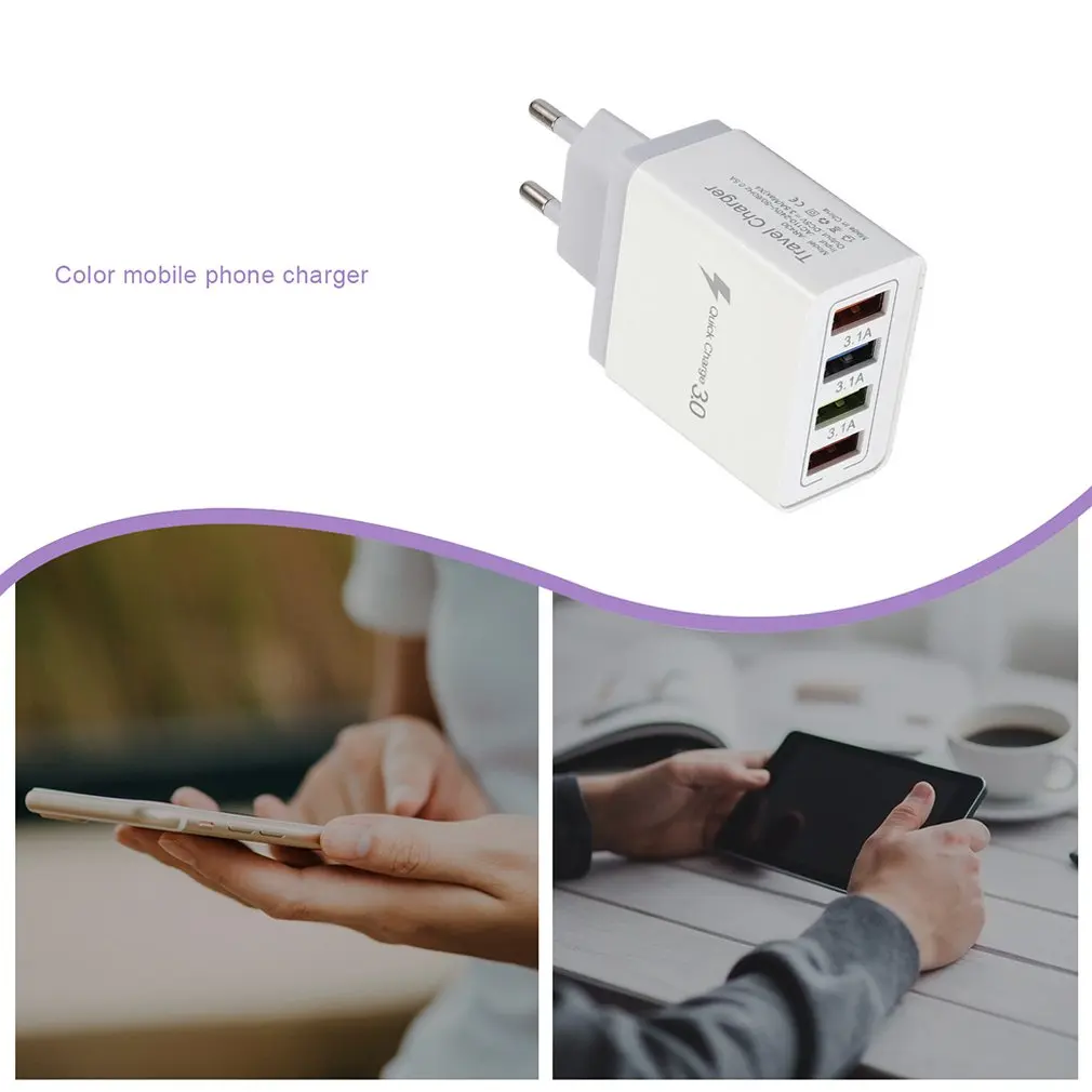 Зарядное устройство с 4 USB-портами 3,0 для iPhone Tablet, дорожная зарядная головка, индукционный Адаптер зарядного устройства