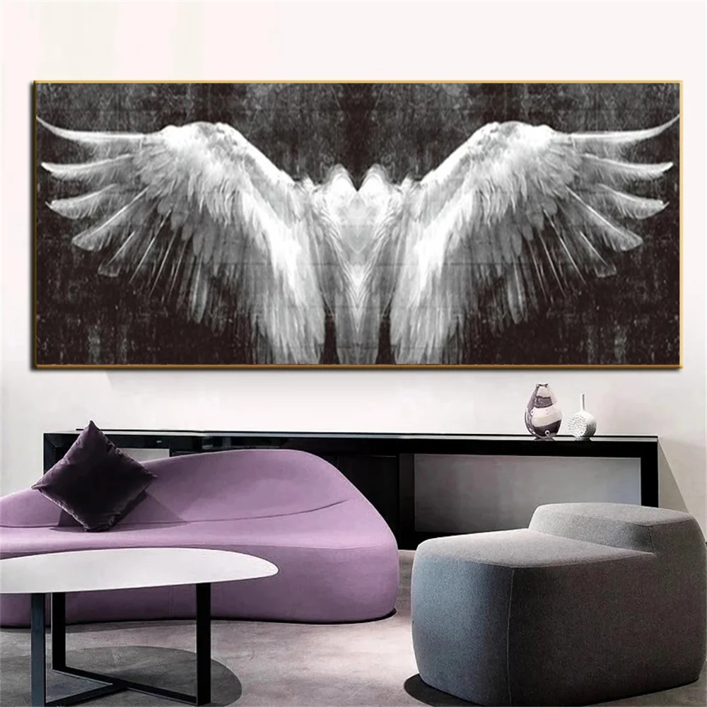 Плакат с ангельскими крыльями, черно-белые фотоплакаты и принты, искусство, гостиная, домашний декор, настенные картины