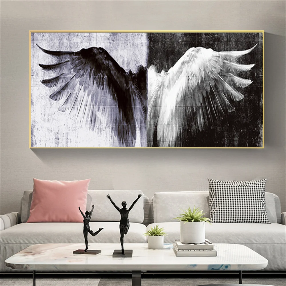 Белые и черные ретро крылья домашний декор холст картины постеры и ...