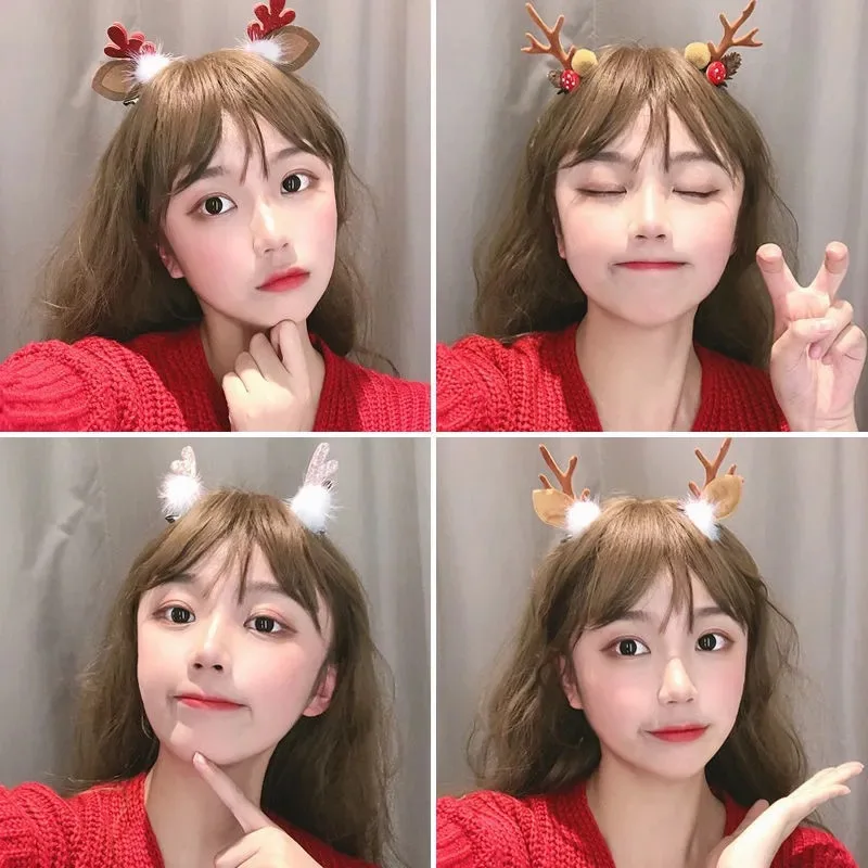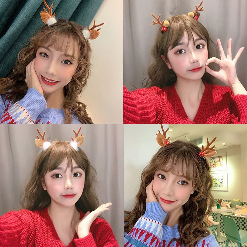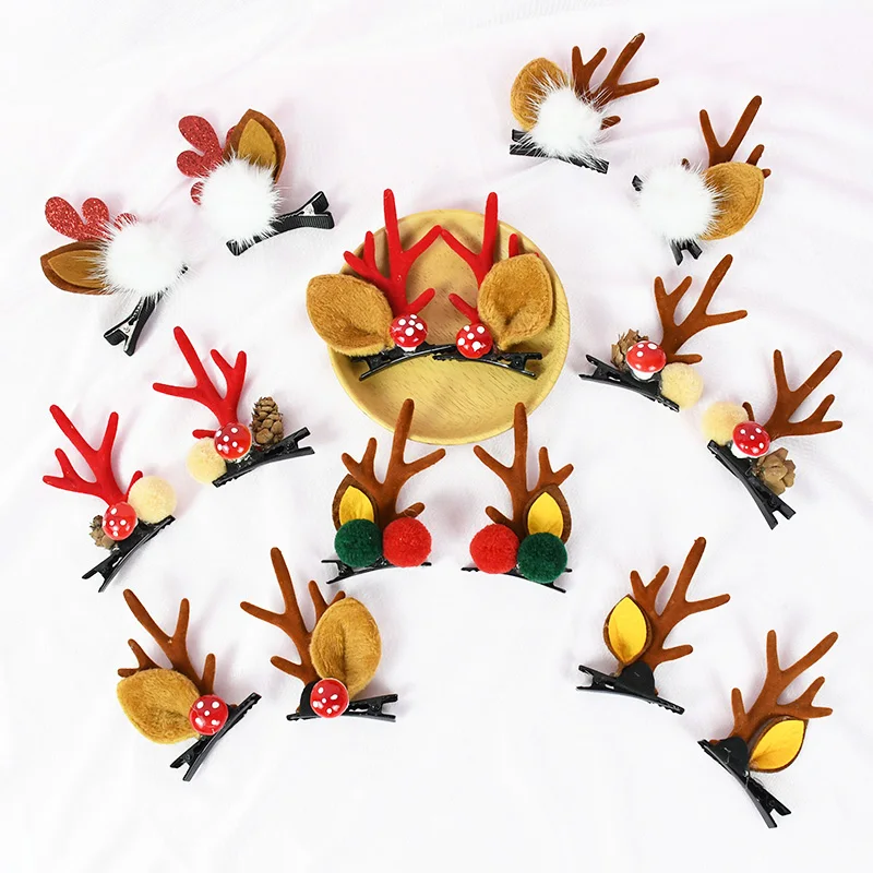 1 пара, детская заколка для волос с милыми рогами, рождественские украшения, аксессуары для волос с ушками оленя, пушистый головной убор, рождественские вечерние украшения, новогодние подарки
