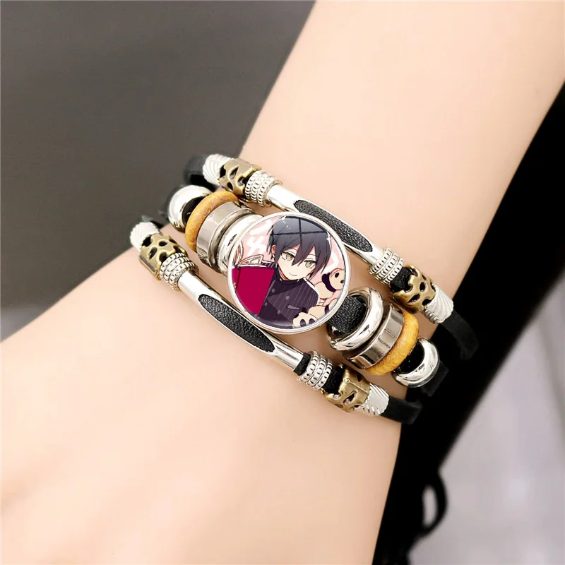 Браслет с аниме данганронпа для мужчин и женщин, многослойный кожаный браслет с мультяшными персонажами и кнопками-застежками ручной работы в стиле панк