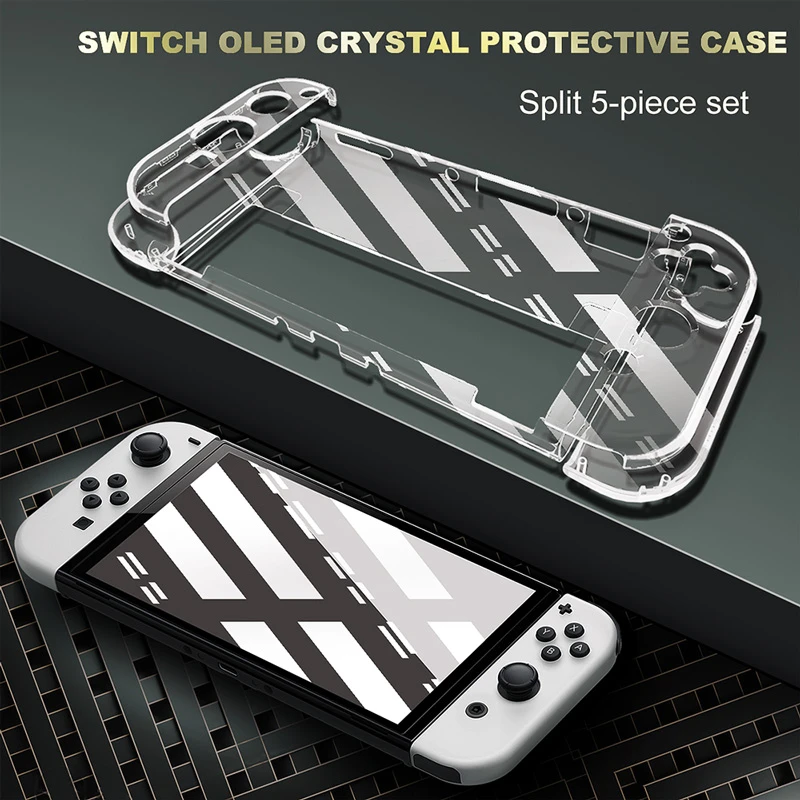 Сумка для хранения из закаленной пленки JoyCon силиконовый чехол с зажимом для большого пальца колпачки PC Кристальный жесткий чехол для Nintendo переключатель OLED аксессуары