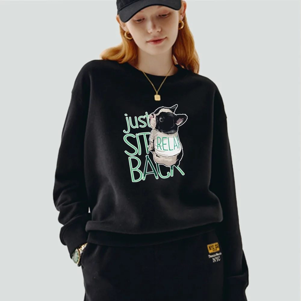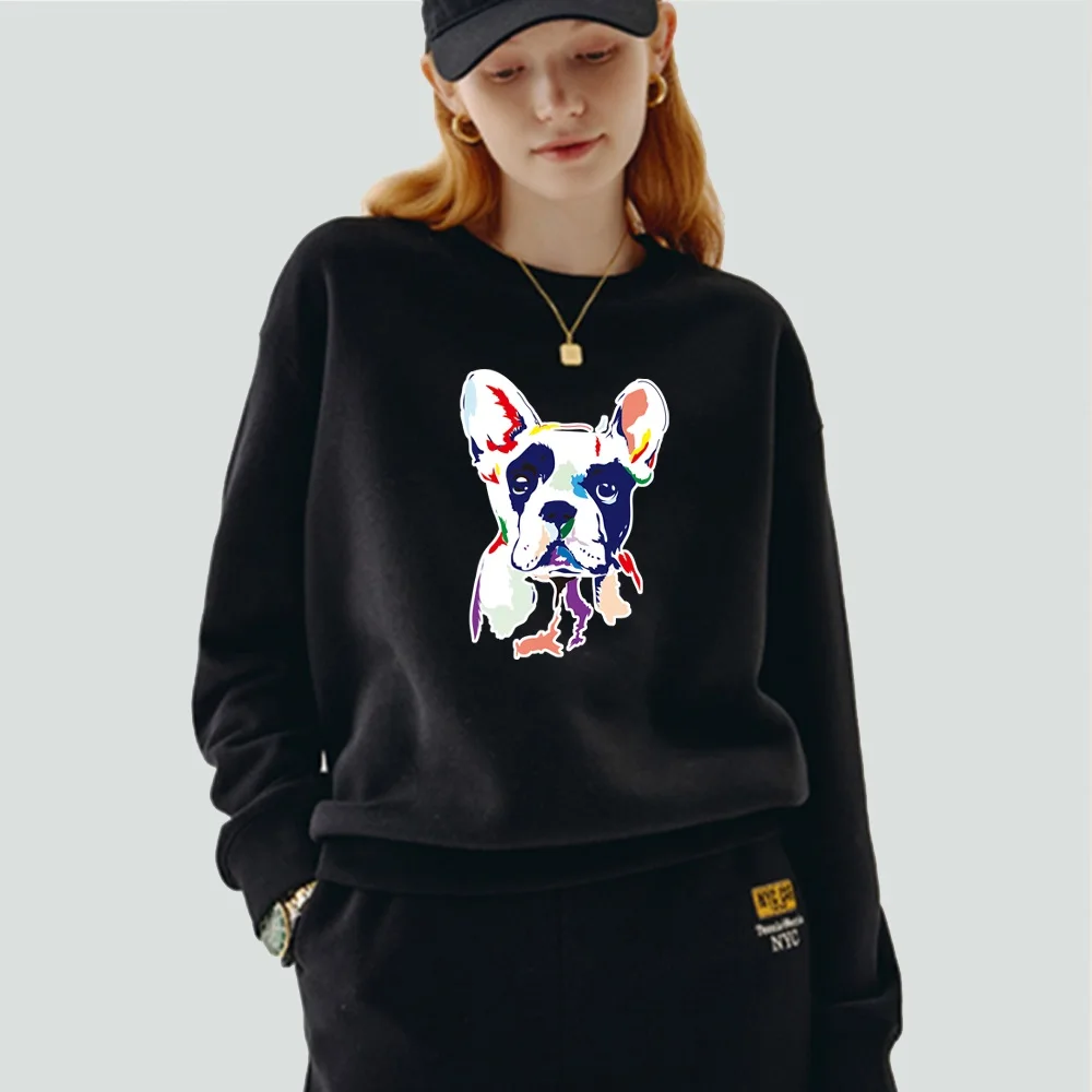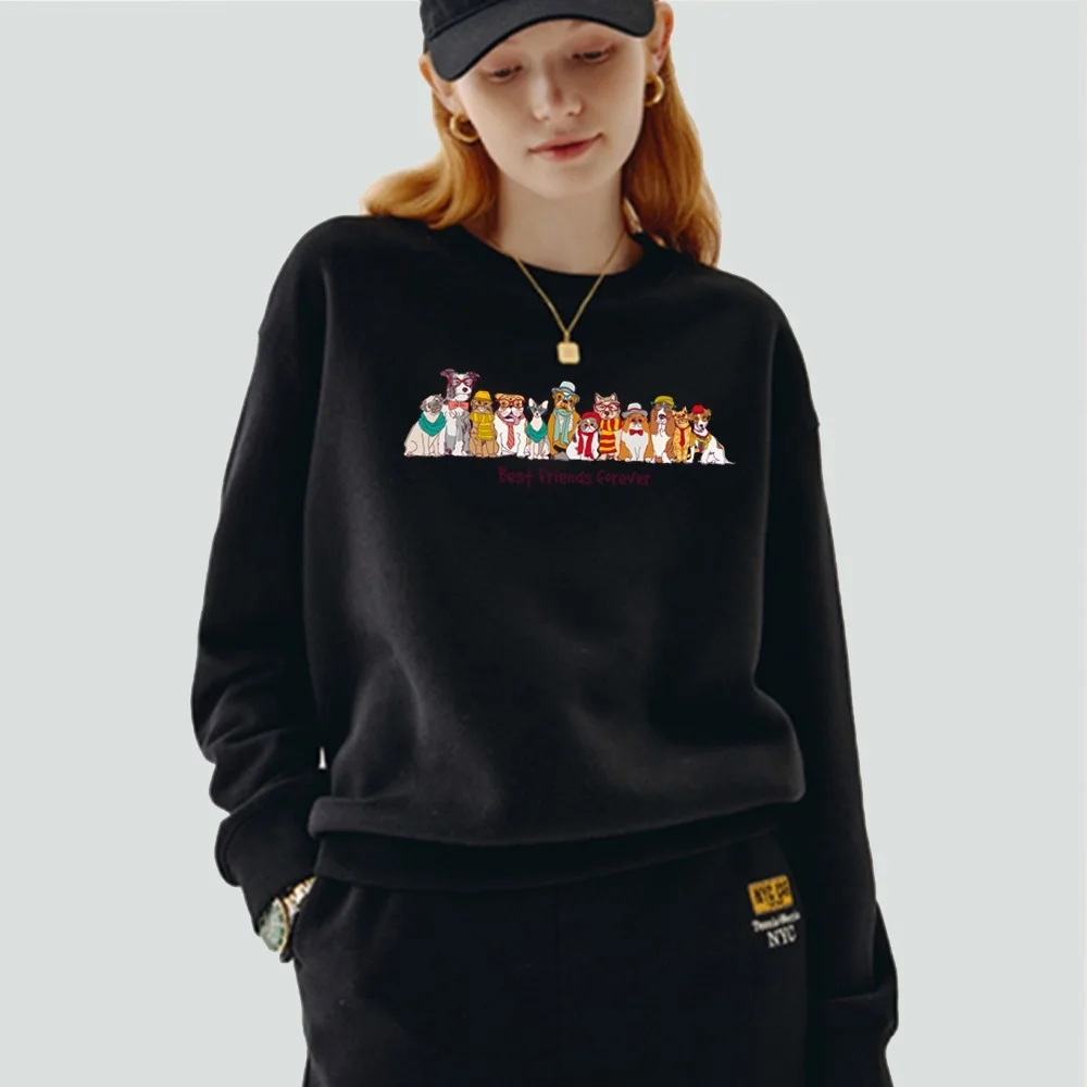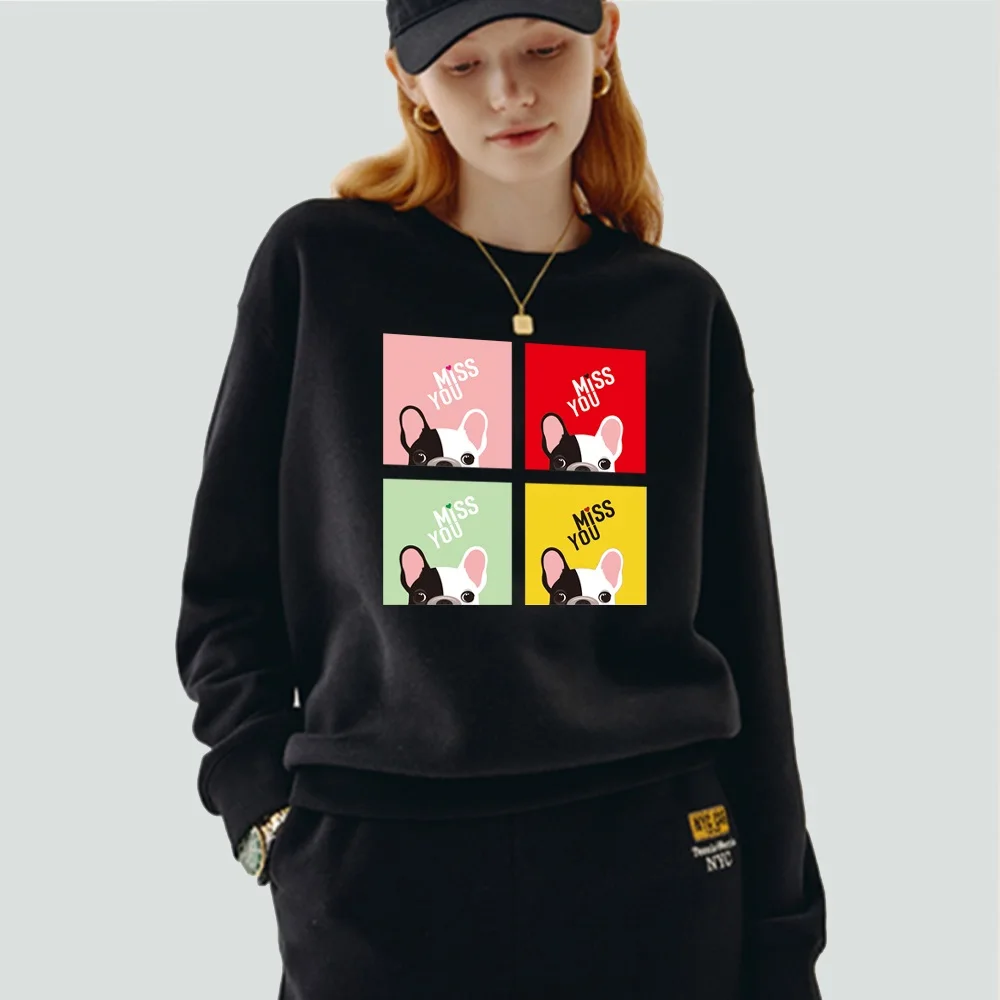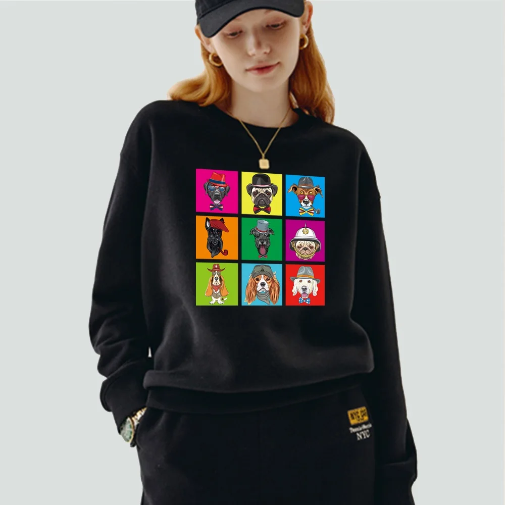 Женский пуловер, теплый свитшот с длинным рукавом и круглым вырезом, с мультяшным принтом собаки, Повседневная осенне-зимняя черная одежда из полиэстера, Топ