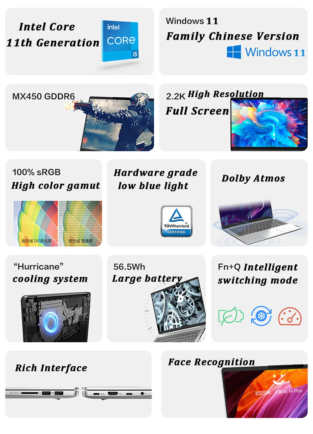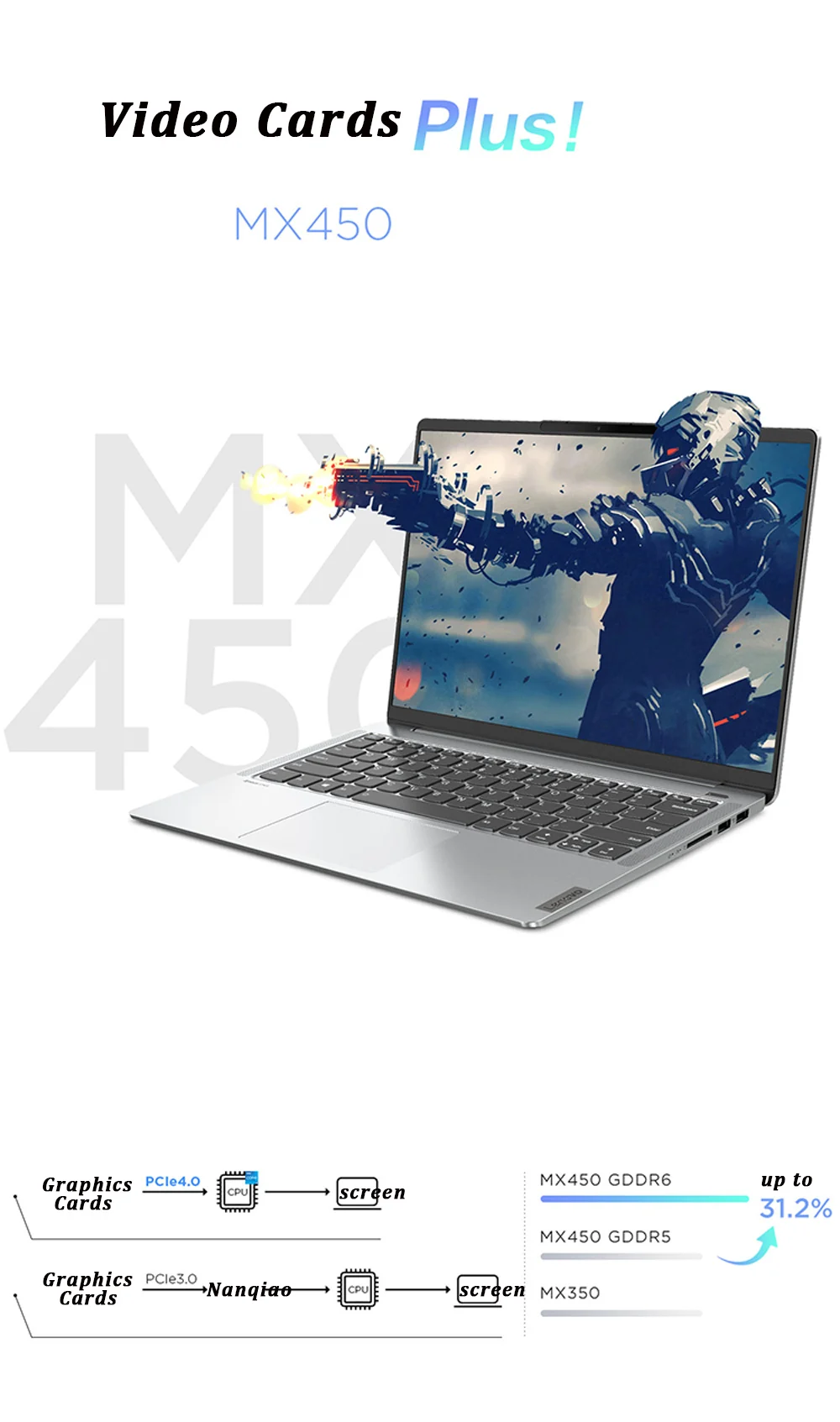 Ультратонкий ноутбук Lenovo Xiaoxin Air 14 Plus, Intel Core, Windows 11, 14,0 дюйма, 16 ГБ ОЗУ, 512 Гб SSD, MX450, 2,2 K IPS экран