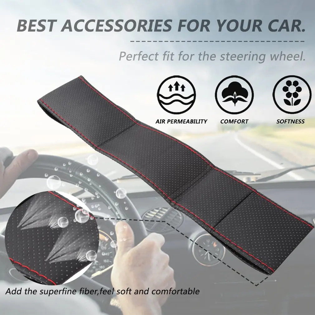 Чехол на руль диаметром 38 см, чехол для руля из искусственной кожи, оплетка руля с текстурой в дырочку