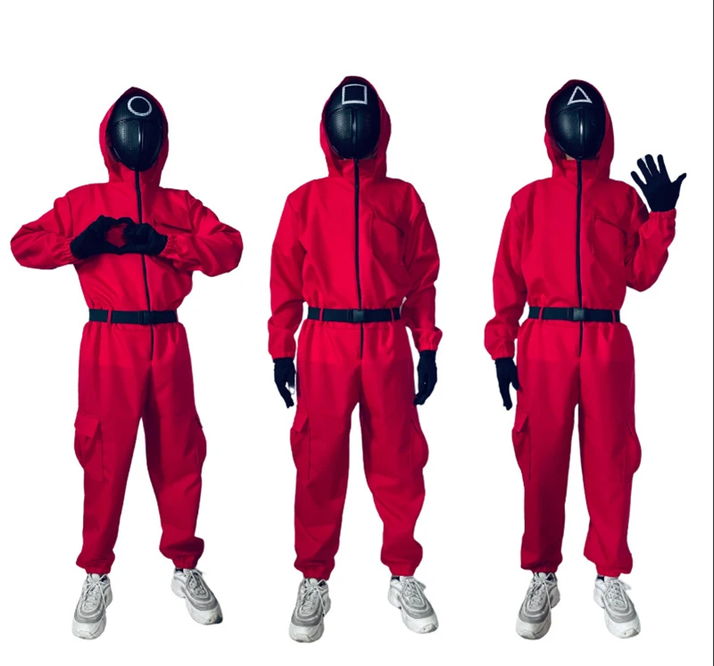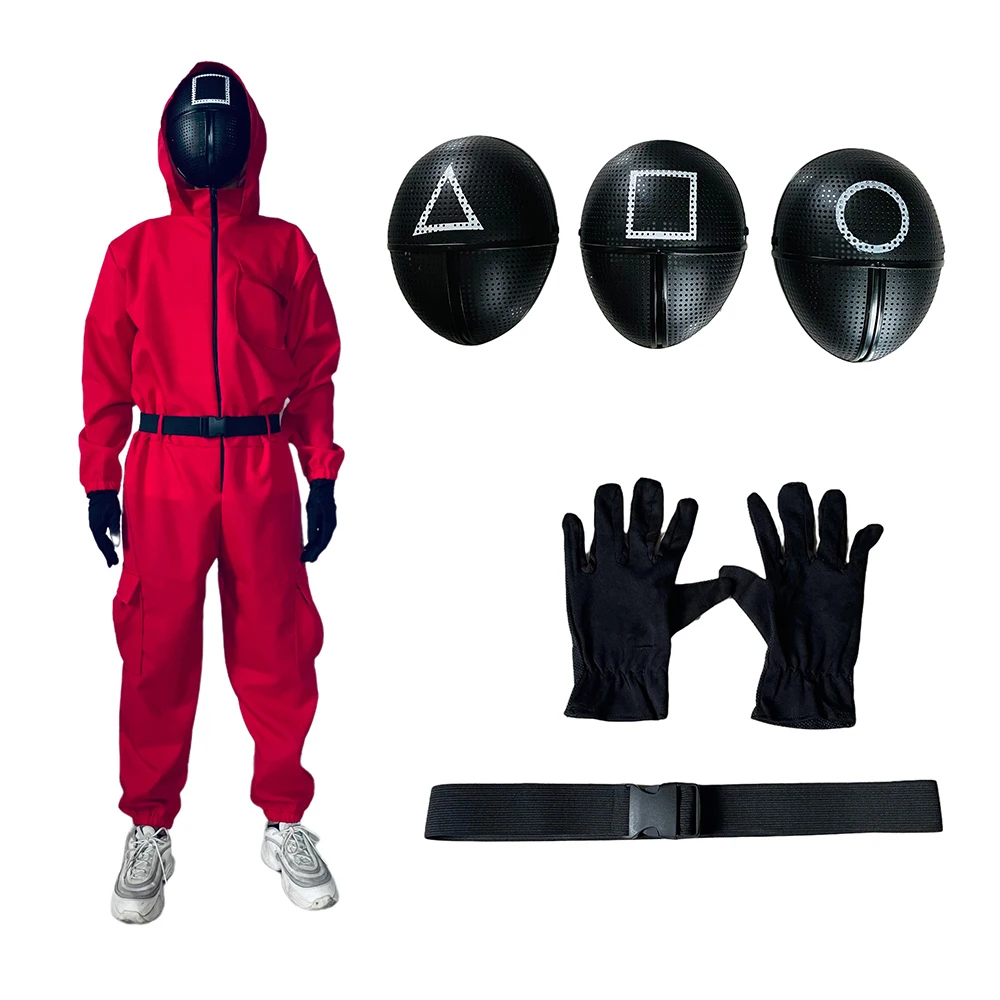 ТВ игра кальмар красный комбинезон маска пояс перчатки косплей костюм для вечеринки галоуин корейский ТВ Li Zhengjae Стиль Одежда