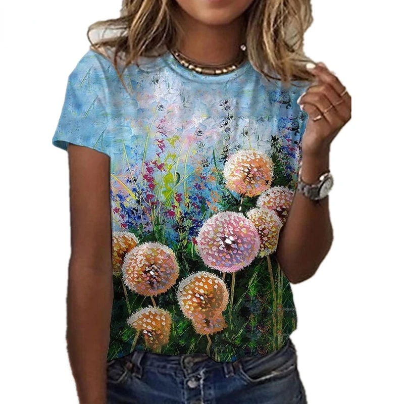 Цветная Женская одежда с рисунком одуванчика, футболка с коротким р...