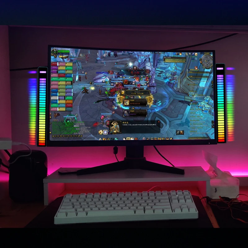 Светодиодная ленсветильник с музыкальной синхронизацией, управление звуком, лампа в ритме, с голосовой активацией, светильник вая полоса RGB для автомобиля, вечеринки, Рождества