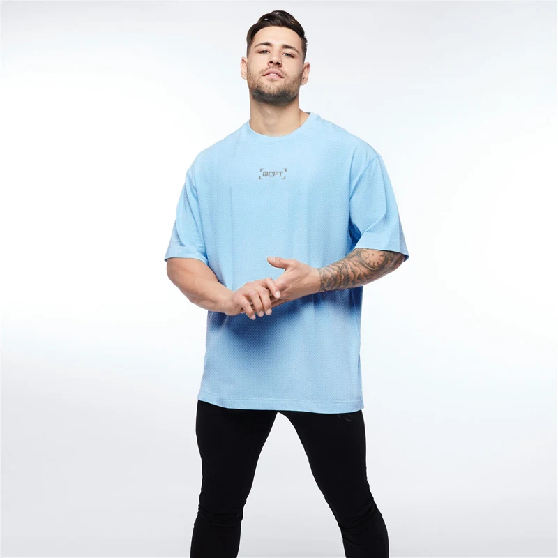 Футболка мужская сетчатая с рукавом до локтя, приталенная Повседневная Удобная рубашка с принтом, уличная одежда, большие размеры, на лето