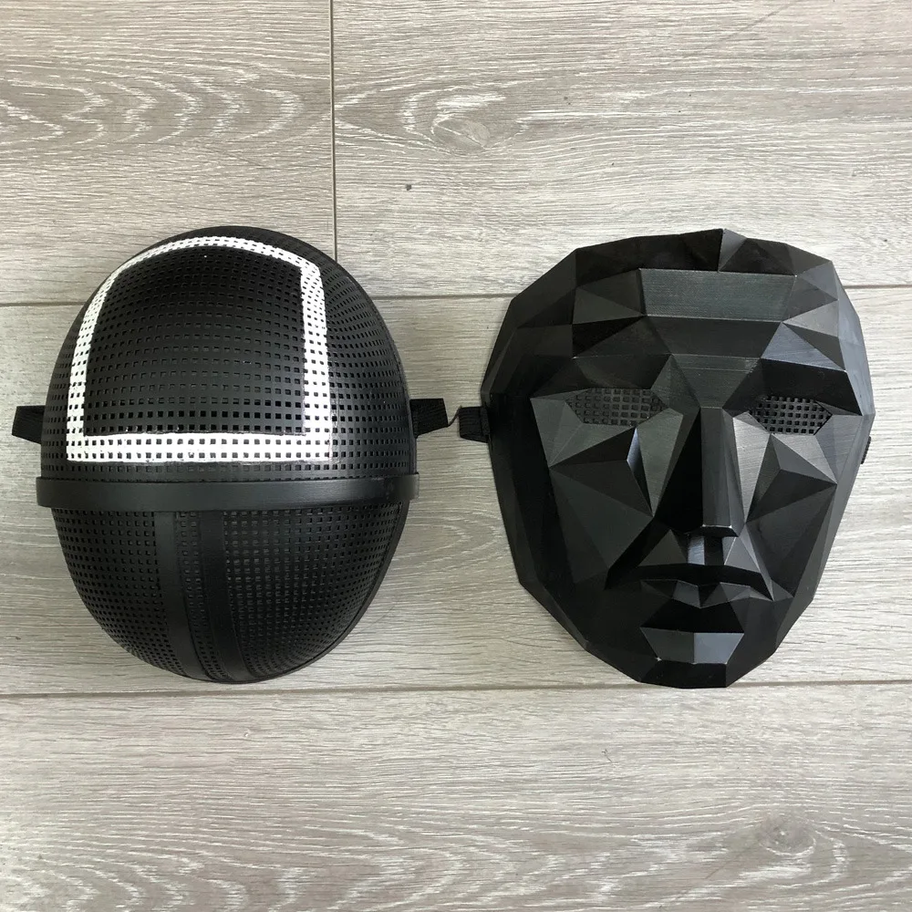 Корейский ТВ кальмар игра черная маска косплей круглый шесть квадратных кругов треугольник шлем технические реквизиты для костюма для вечеринки