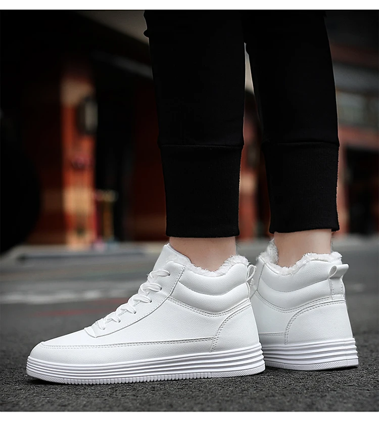 Зимние мужские кроссовки, теплые плюшевые ботильоны, унисекс, высокие зимние ботинки с высоким берцем для женщин, белая повседневная обувь на плоской подошве