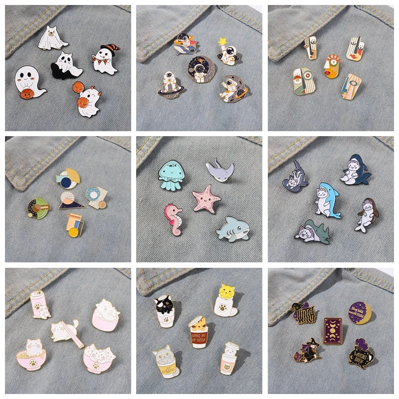 Эмалированная булавка в виде морских животных 5 шт.компл. Kitties ведьмы, призрак встряхивания, гиппокапс, астронавты, броши, значки, значок, подарок, искусство, оптовая продажа