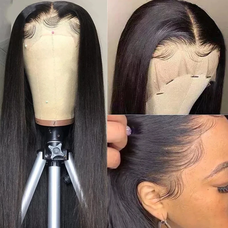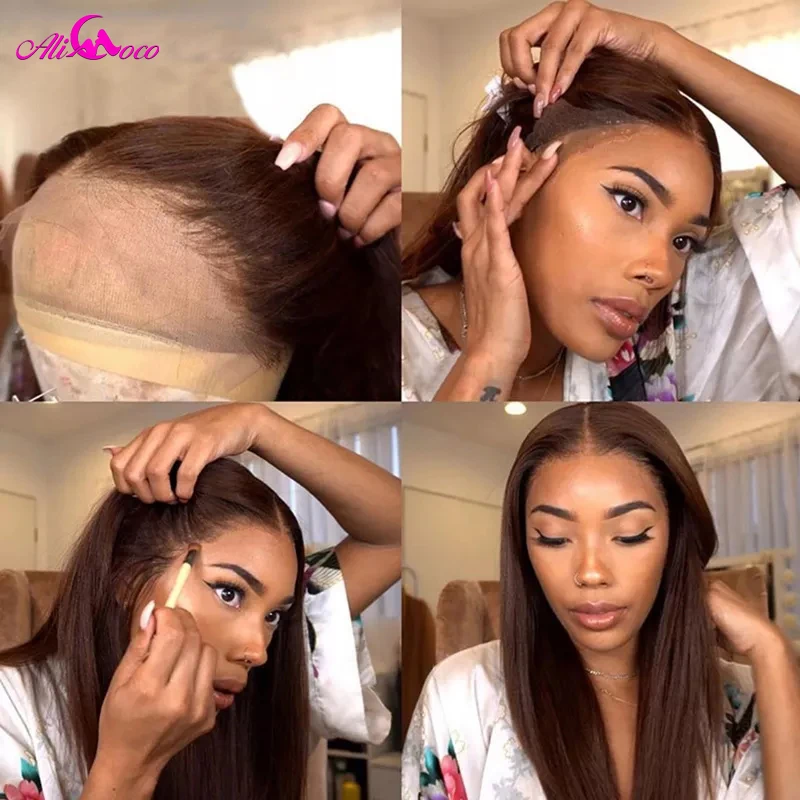 Парик из натуральных прямых человеческих волос, окрашенный шоколадно-коричневый 30 дюймов, прозрачный, 4, 13X 6
