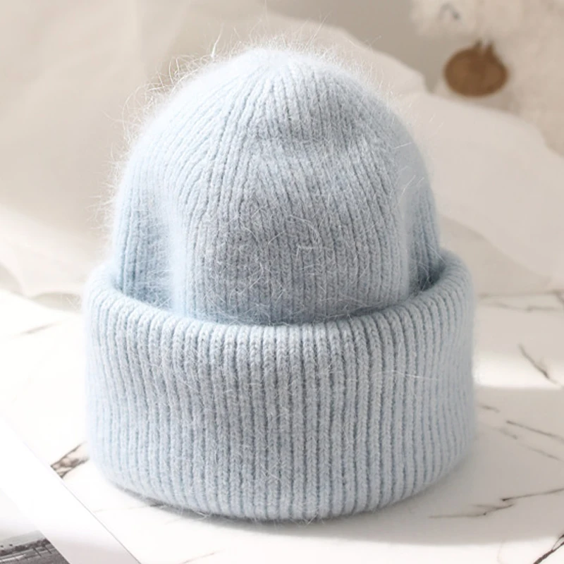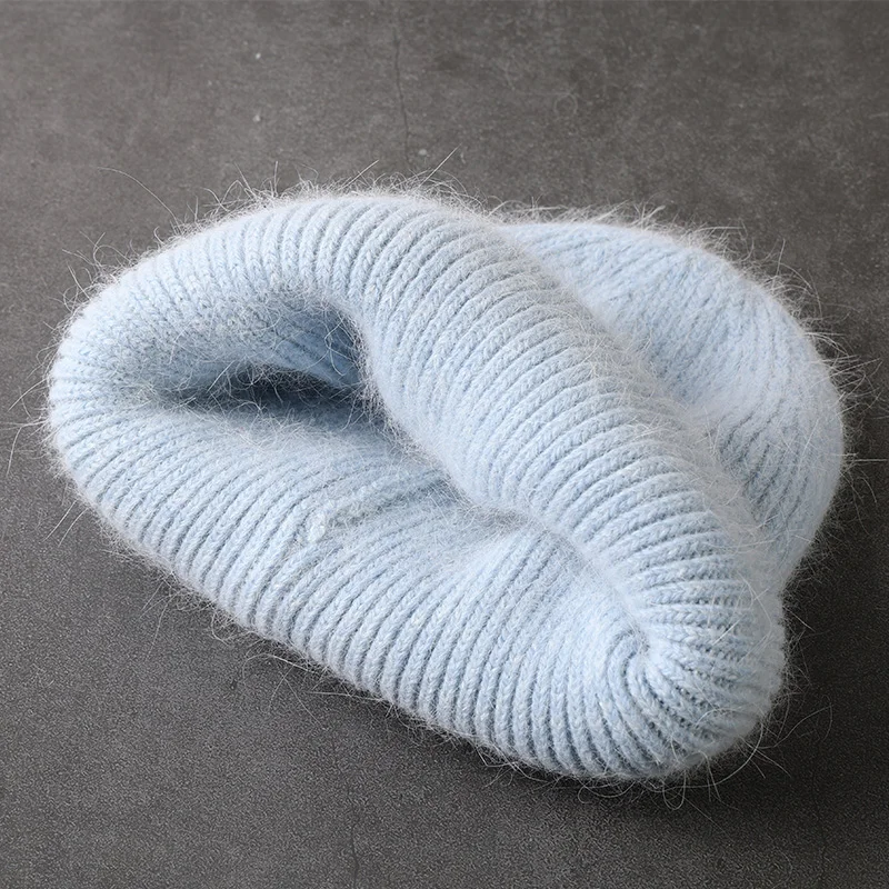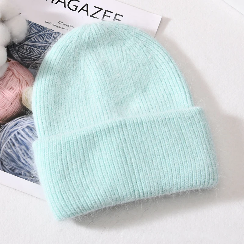 Женская шапка Beani из кроличьего меха, Ангорская Вязаная Мягкая те...