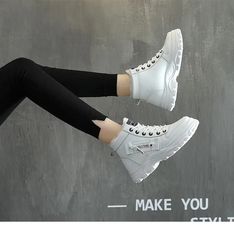 Женские зимние ботинки, новинка 2021, Модная стильная обувь с высоким верхом, Повседневная Женская водонепроницаемая теплая Женская Высококачественная обувь белого и черного цвета