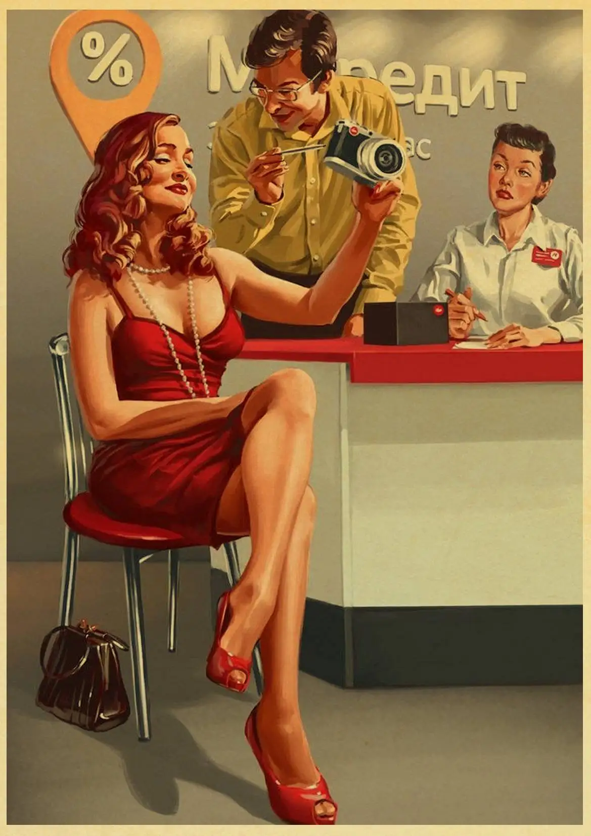 Винтажный постер из крафт-бумаги с изображением сексуальной женщины...