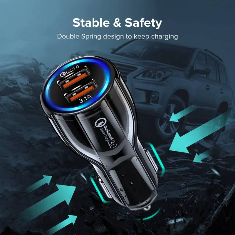 Автомобильное зарядное устройство с двумя USB-портами, QC 3,0
