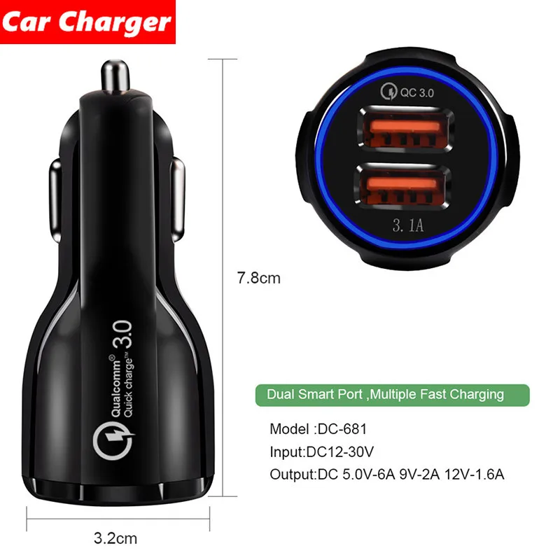 Автомобильное быстрое 3,0 Автомобильное usb-устройство для зарядки ...