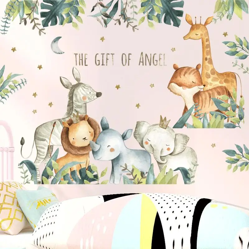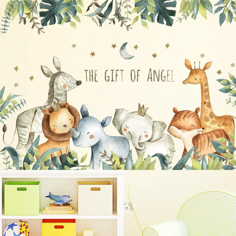 Тропических животных настенные наклейки для детской комнаты настенн...