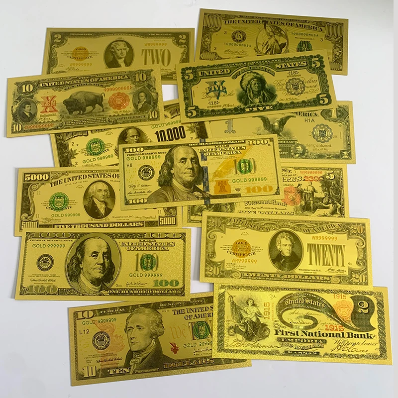 15 шт набор золотых банкнот 1,2,5,10,20,50,100 ,500,1000,5000,10000...