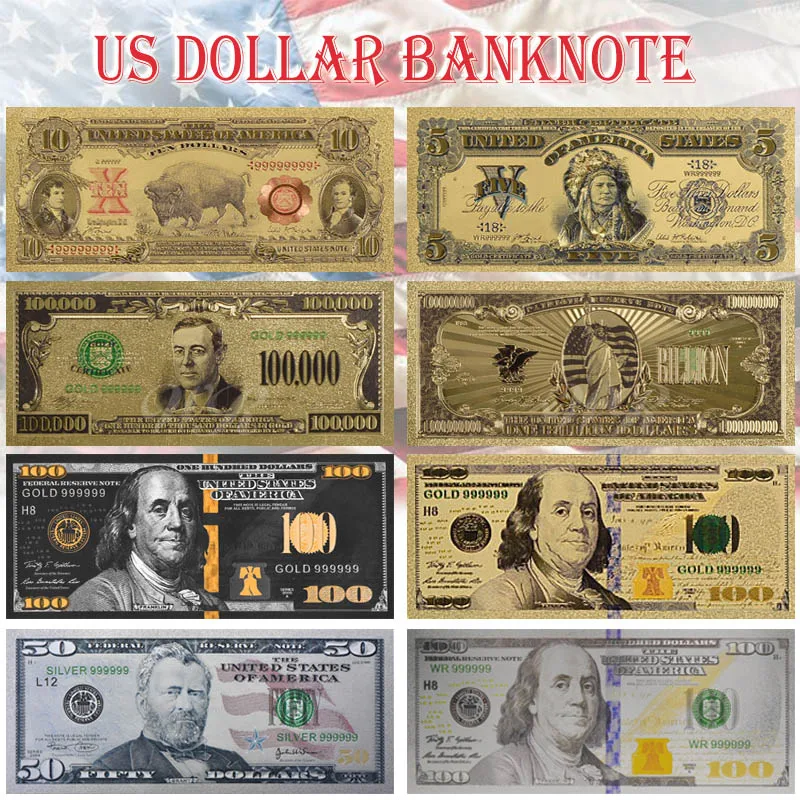 Купюра американского доллара, серебряные банкноты с покрытием из фольги, искусственные деньги, купюры долларов США, сувенирные подарки для коллекционной банкноты
