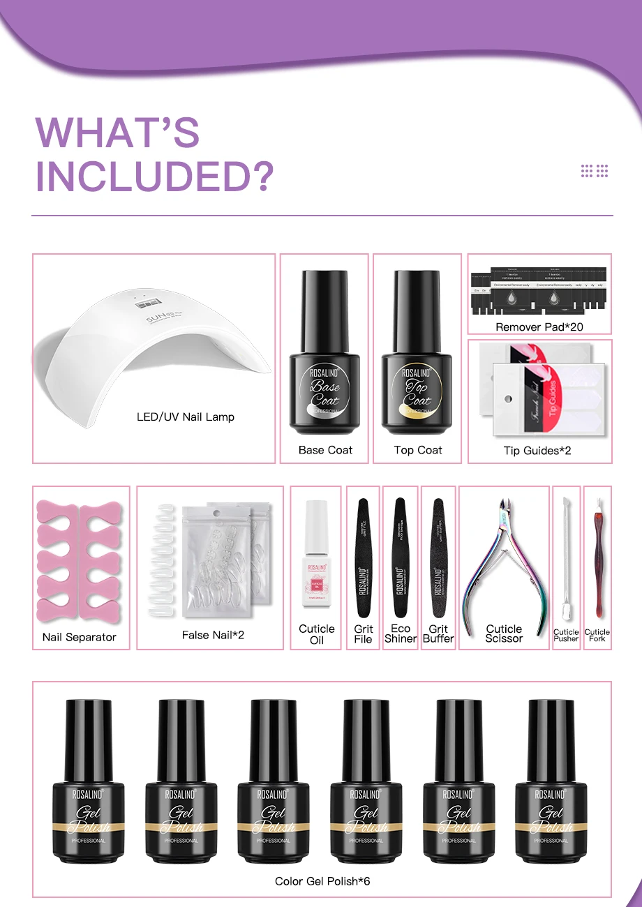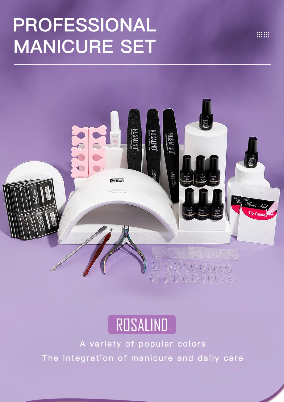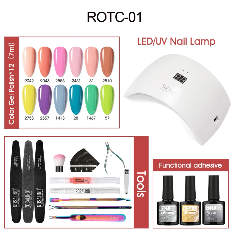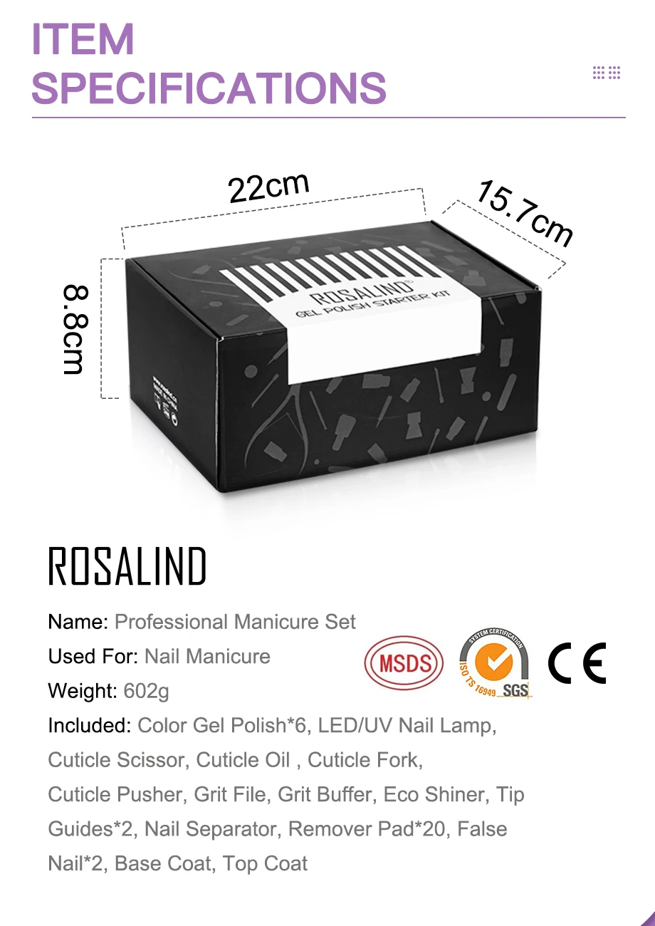 ROSALIND набор гель-лаков для ногтей гибридные Лаки, полуперманентный лак для ногтей, базовое верхнее покрытие с фотоэлементами, наборы инструментов