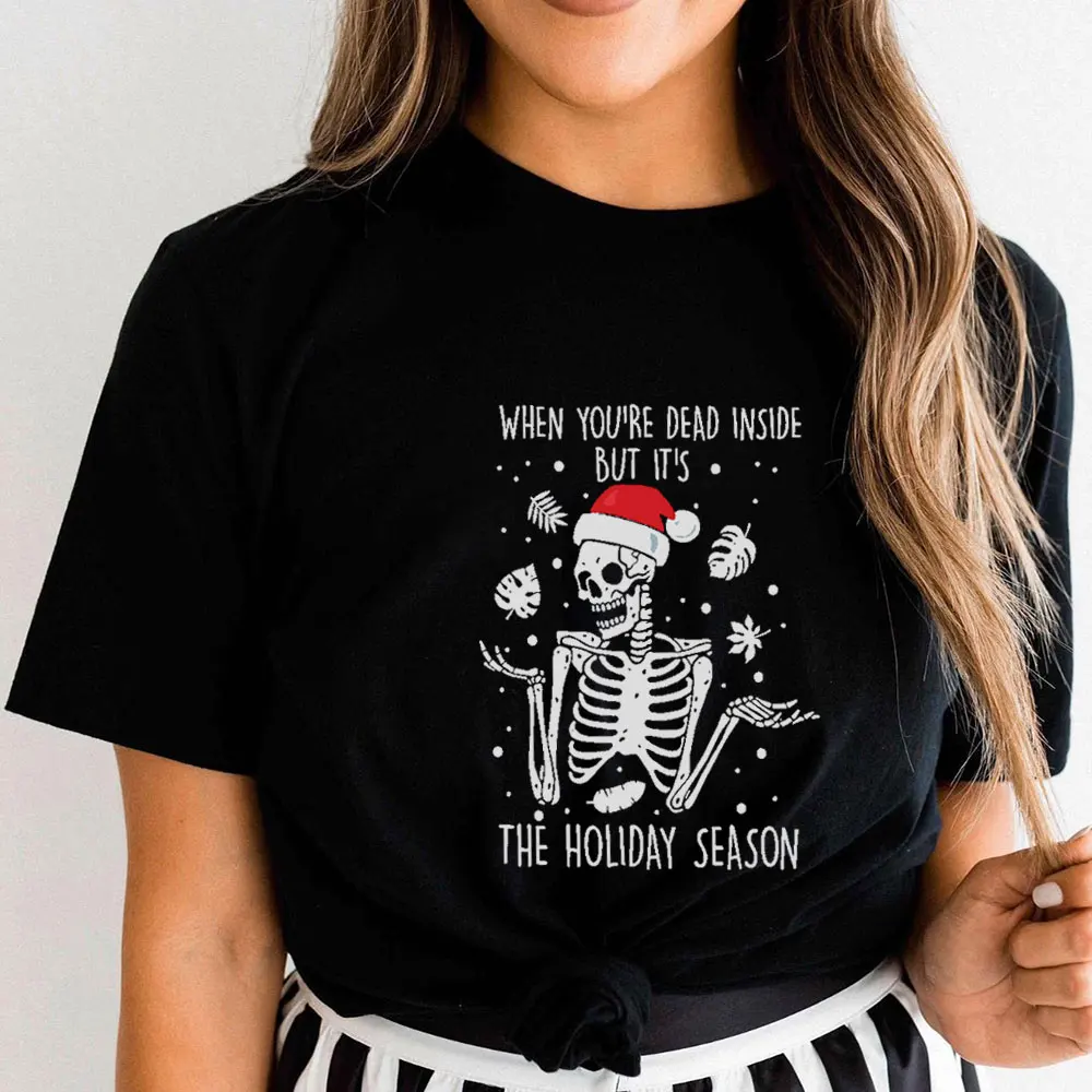 Рождественская рубашка с принтом скелета на сезон праздников, Забавный Повседневный Топ унисекс из 100% хлопка с коротким рукавом, новогодняя футболка