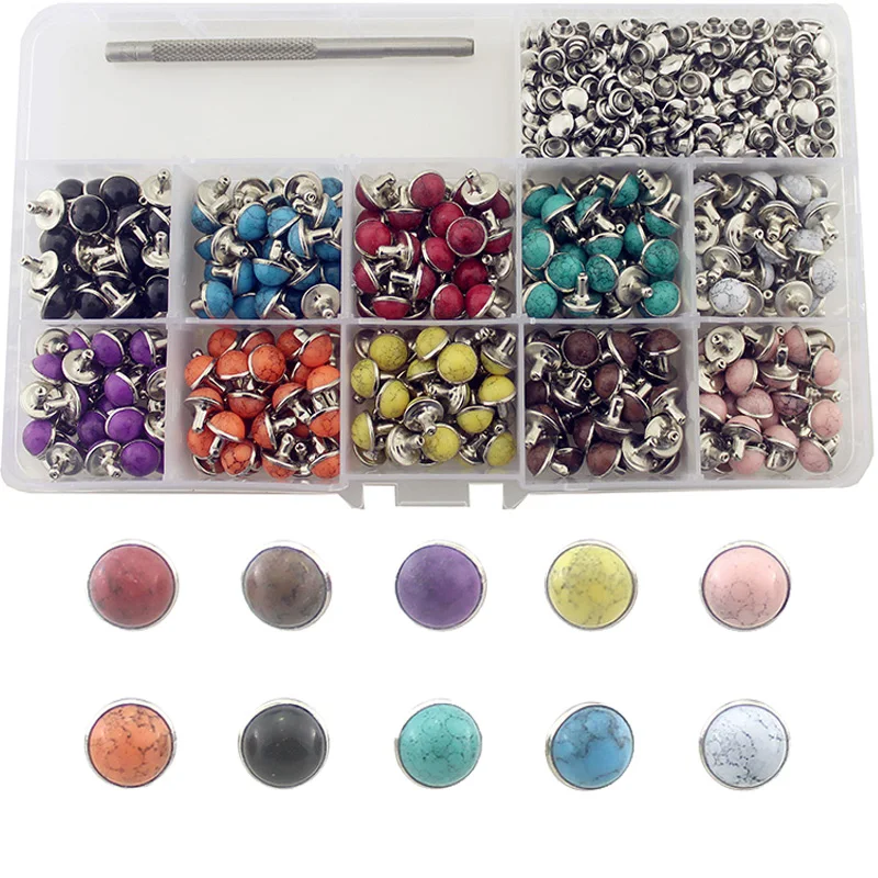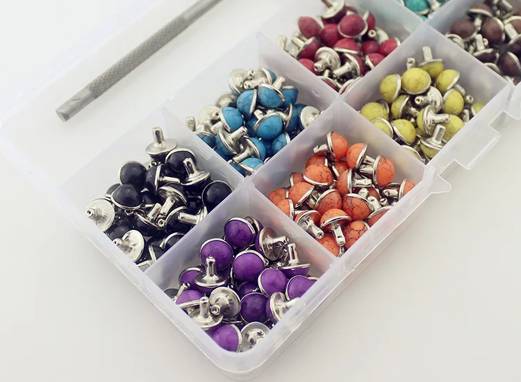 320 комплектов 8 мм смешанные цвета латунные акриловые бирюзовые заклепки для кожи заклепки из горного хрусталя для одежды сумки ремня Diy аксессуары