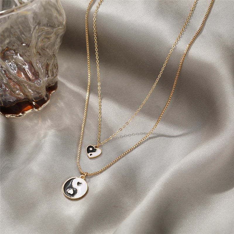Женское многослойное ожерелье с подвеской в виде радужного сердца
