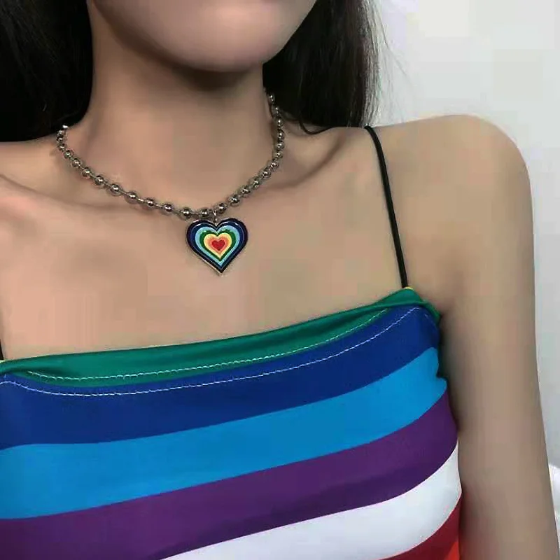 Многослойное ожерелье-чокер с радужным сердцем для женщин, 2021, ра...