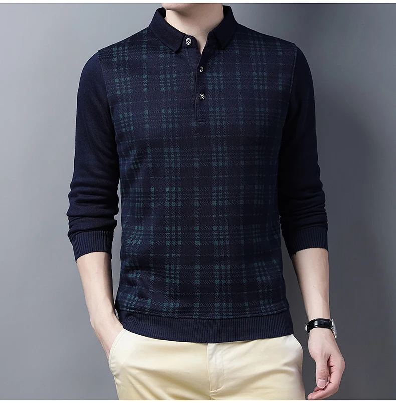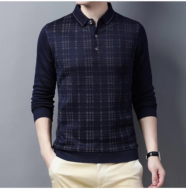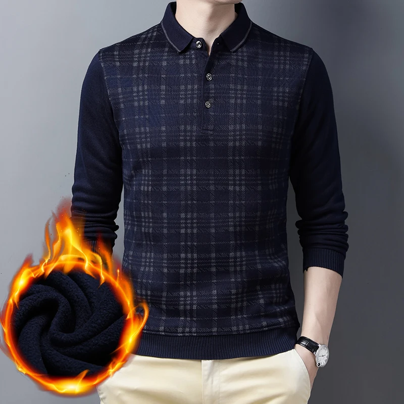 Новый брендовый Модный зимний плотный теплый свитер, мужские мягкие трикотажные изделия, облегающий Повседневный клетчатый вязаный пуловер с отложным воротником Y406