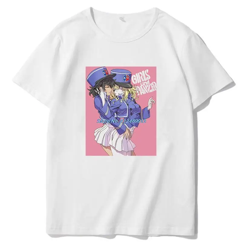 Футболка женская и мужская оверсайз с принтом манга, сексуальная уличная одежда с аниме Girls Und Panzer Для лесбийских пар, в стиле Харадзюку