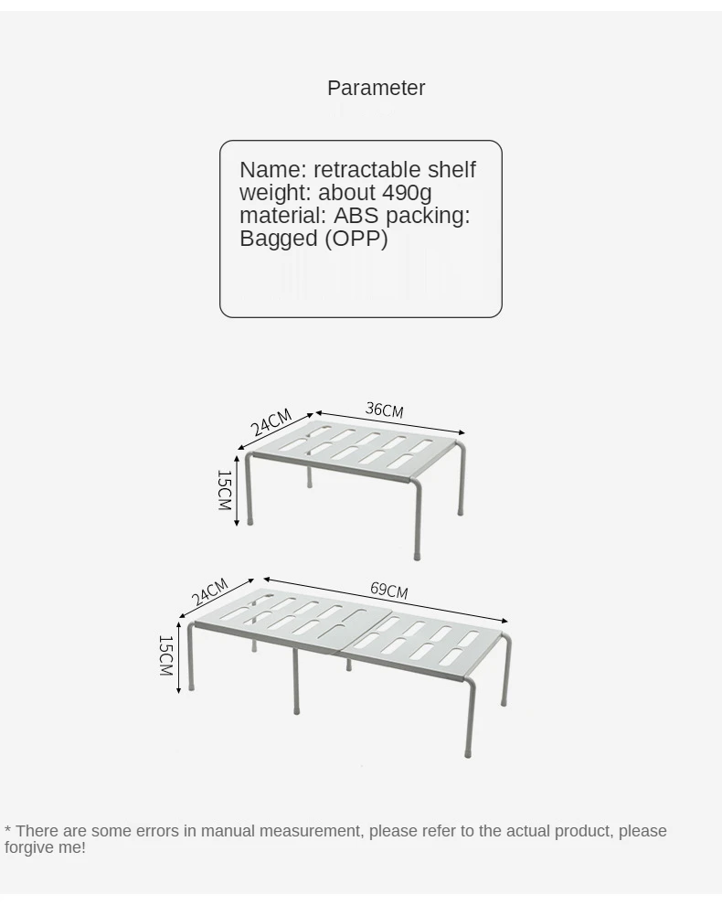 Наименование: телескопическая стойка для раковины Материал: АБС-пластик Размеры: 34,8*18*15,5 см Вес: 490 г Цвет: белый/серый Особенности: Выдвижная Длина 35-61 см, она может создать более вертикальное пространство, полностью использовать дополнительное пространство и хранить больше вещей. Толстая опора, шесть опор толстые и толстые, хранение более стабильное, высококачественный полипропиленовый материал, высокая грузоподъемность, противоскользящие ножные подушечки внизу.