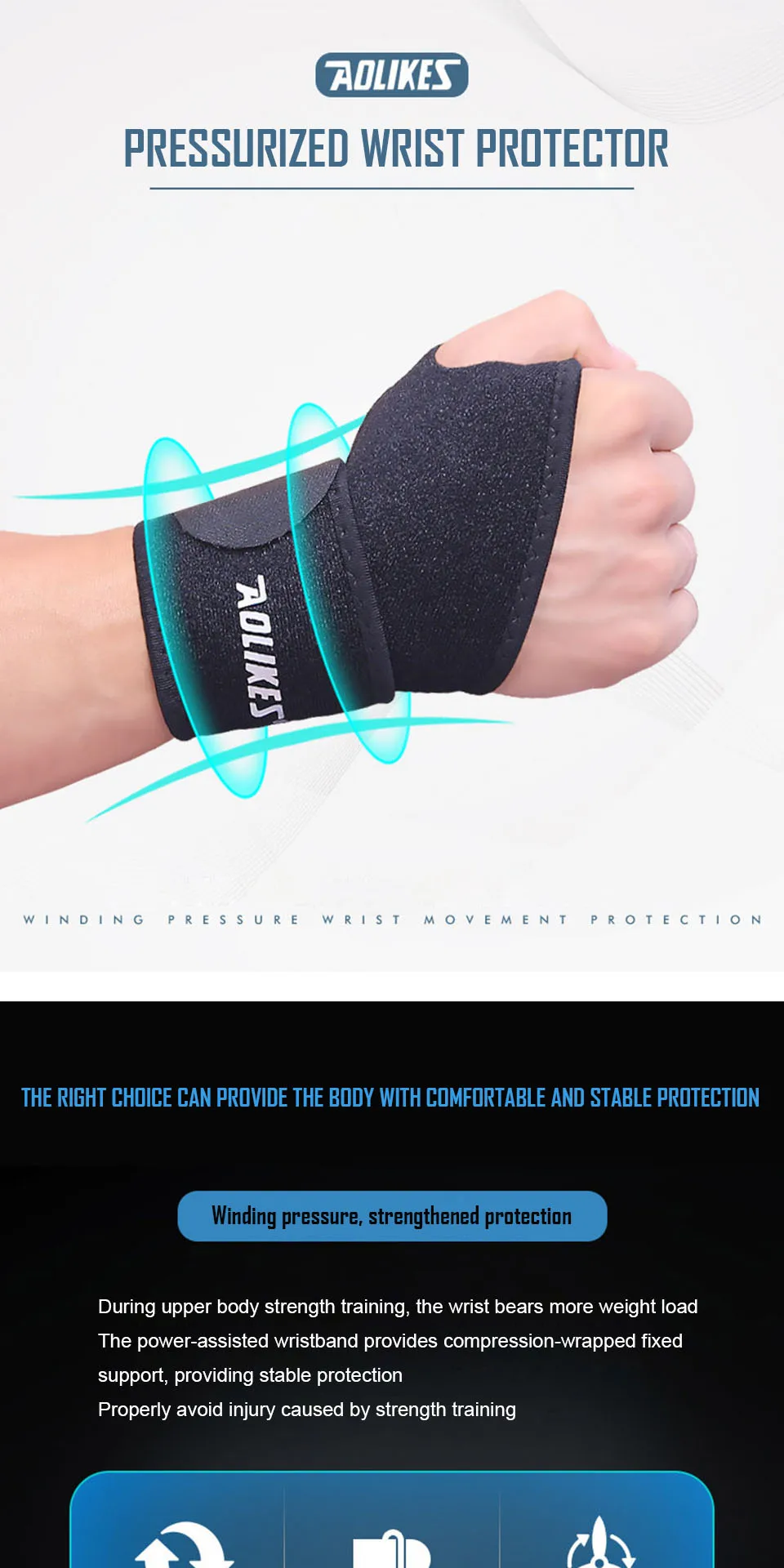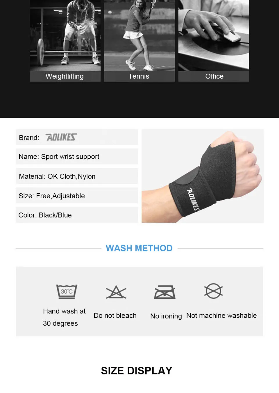 Предназначен для легкой атлетики, баскетбола, волейбола, тенниса, джемпера, велоспорта, приседания, тяжелой атлетики и т. д. В то же время, применяется для редактирования работы на компьютере в течение длительного времени, работы, вождения, переноски и так далее. Поддержка растяжений, тендонита, артрита запястного туннеля, облегчения боли. Обертывания на запястье можно использовать в качестве повязки на день/ночь, или когда вам нужно, во время сна или выполнения повторяющихся задач, таких как ввод текста и использование мыши.