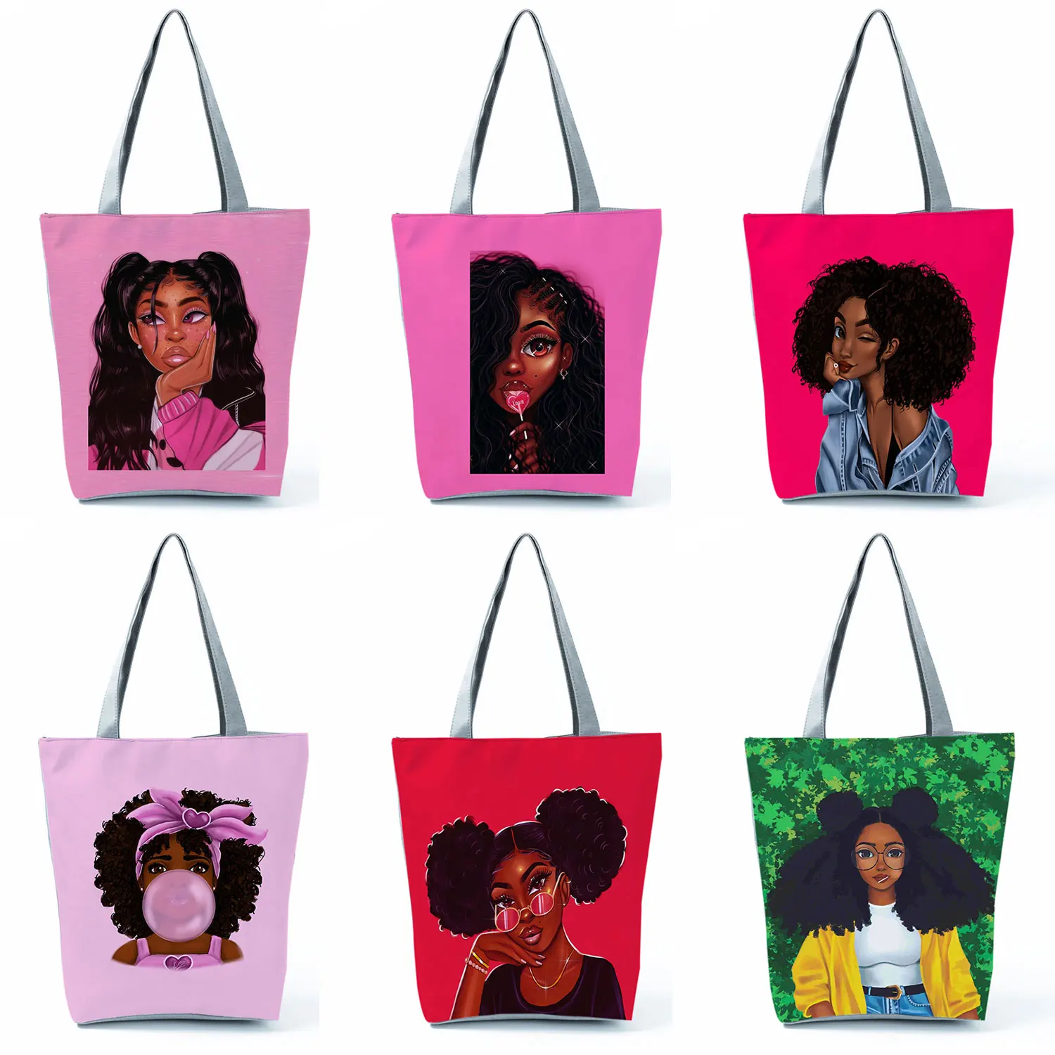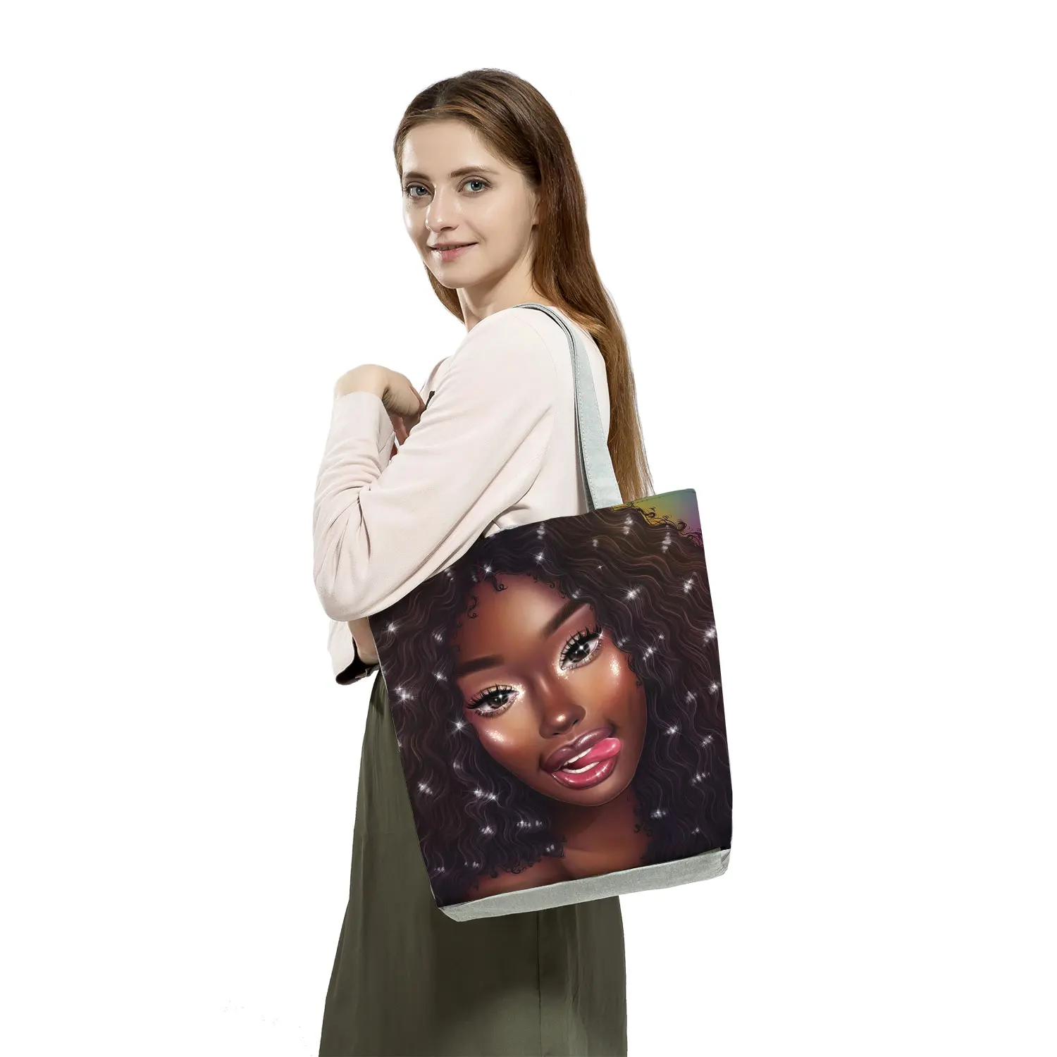 Крутые сумочки с принтом афро-девушки, африканская Женская Повседневная Сумка-тоут, женская сумка для покупок, черные школьные сумки для девочек, Пляжная дорожная сумка, Прямая поставка