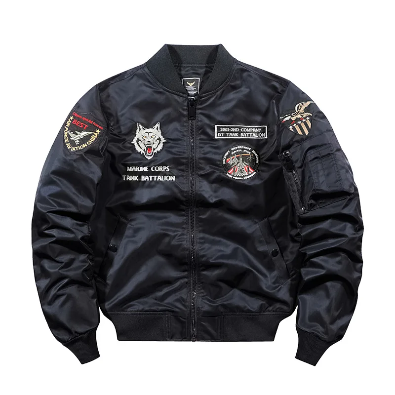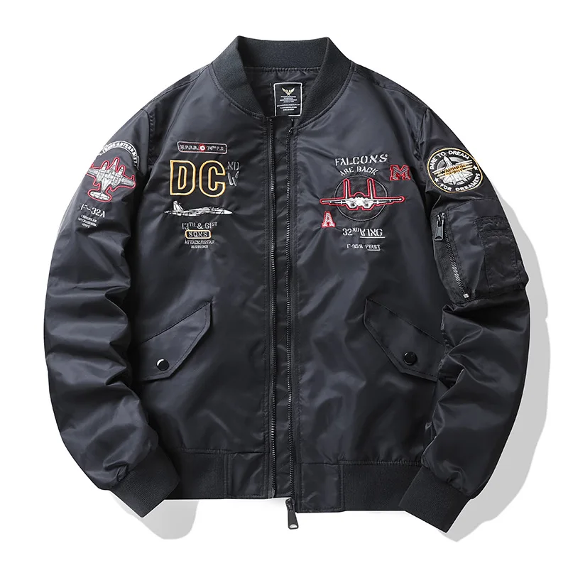 Мужская куртка-бомбер с вышивкой, черная армейская куртка-бомбер в ...